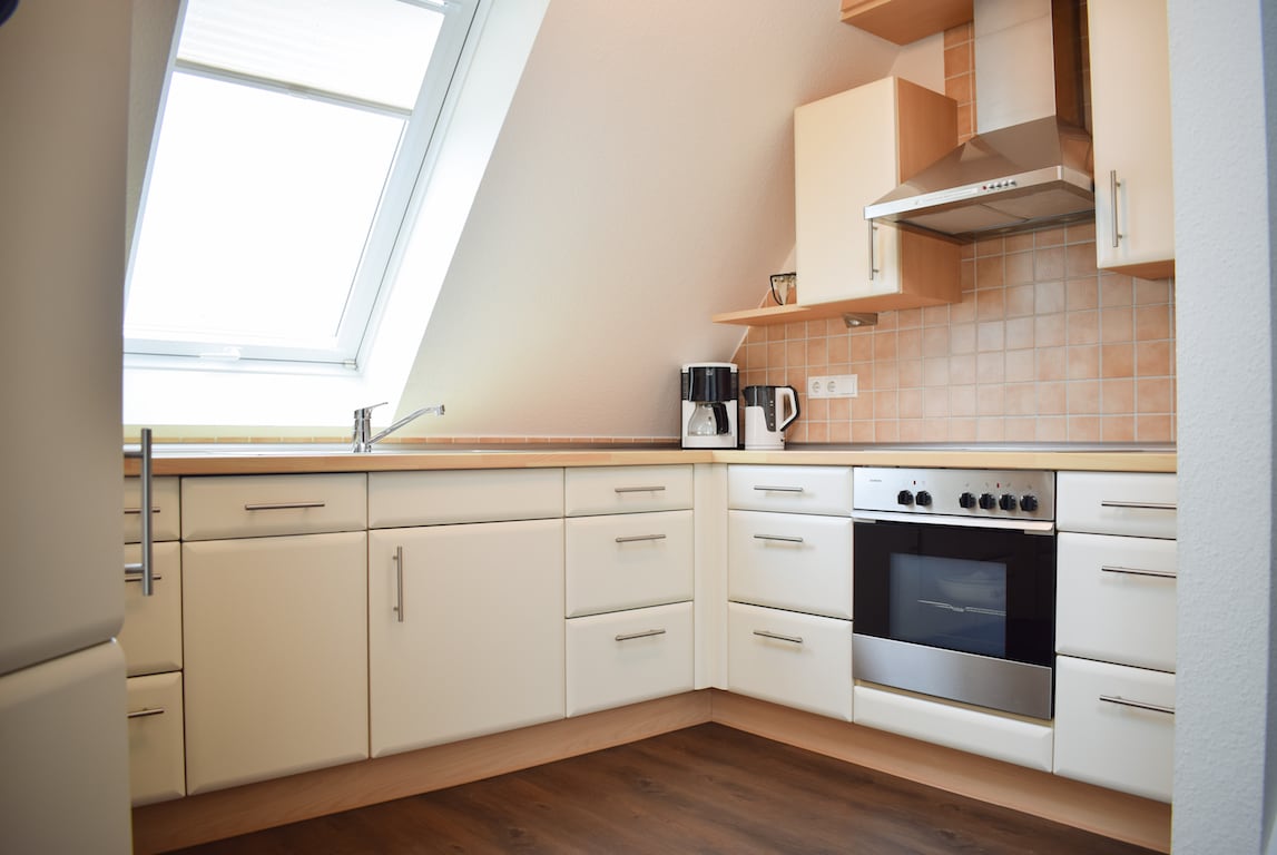 El apartamento de 80 metros cuadrados "Silbermöwe" está ubicado en el piso superior y ofrece en dos plantas hasta 6 personas todo lo necesario para un descanso relajante de la clase adicional; además de una chimenea de leña, también hay una sauna en el apartamento. En el segundo piso encontrarás uno de los tres dormitorios del apartamento desde el que tienes una vista impresionante de la reserva natural de Leyhör. Además, el departamento tiene una plaza de estacionamiento en la casa.