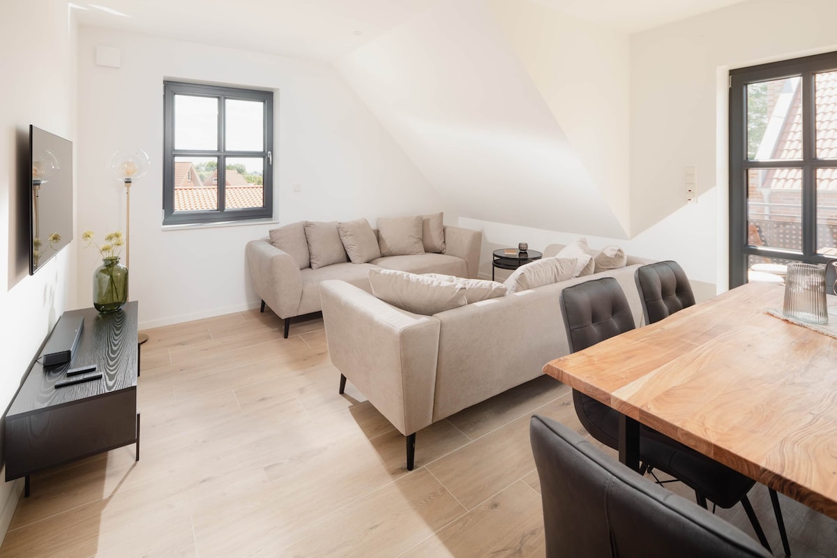 ¿Le apetece mar, relajación y un interior elegante? ¡Entonces lo habéis encontrado! La Westermarscher Grashaus, construida en 1844, está situada en una zona verde, directamente en el dique entre Norddeich y Greetsiel. Nuestro nuevo apartamento en la planta superior es perfecto para dos personas. INFORMACIÓN IMPORTANTE DE UN VISTAZO: CHECK-IN A partir de las 3 p.m. CHECK-OUT? 10 a.m. ¿CERCA DEL MAR? 800 metros WIFI: Gratis ¿SUPERFICIE HABITABLE?: 50 m² ¿PARKING? En la propiedad