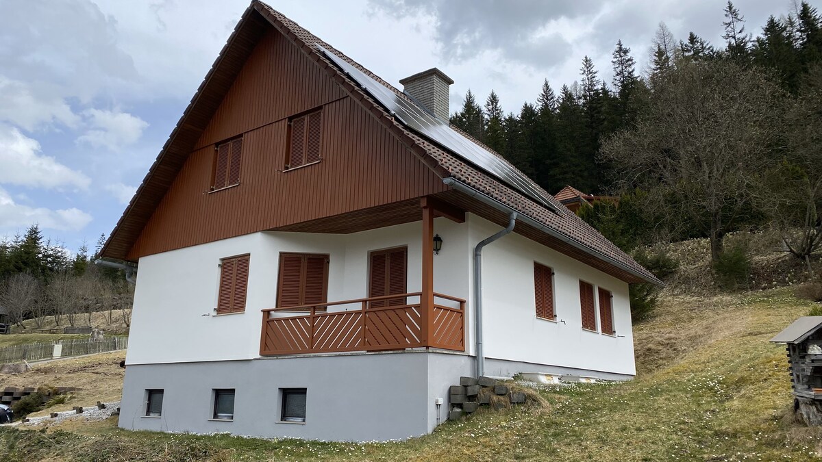 Nuestro fantástico Chalet Sonnenschein se encuentra en medio del pequeño pueblo de Hohentauern a 1275 metros sobre el nivel del mar y es un punto de partida perfecto para actividades de invierno como esquí, esquí de fondo y excursiones de esquí. Tiene un Schibox, 2 plazas de estacionamiento y acceso cubierto a la casa desde la cochera. En la casa ofrecemos una amplia sala de estar con comedor, un invernadero bañado por el sol y una cocina muy bien equipada. En el primer piso hay un baño y 3 dormitorios.