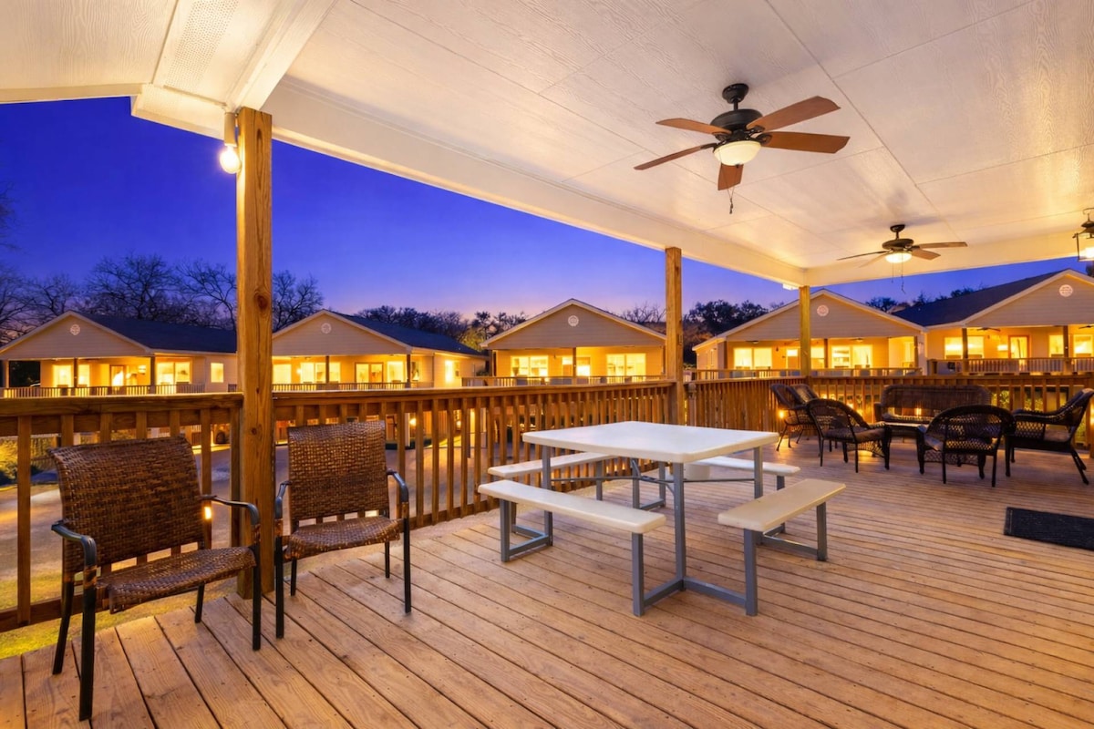 ¡Le damos la bienvenida a nuestra cabaña Zen! ¡Una minicasa colorida, tranquila y con un diseño artístico, ubicada en la parte trasera de nuestra propiedad de 4 acres y en pleno centro de la acción en Texas Hill Country! Estamos a solo 0.5 millas de la presa, a 3 millas de «The Preserve», a 4 millas de «Tubing on the Horseshoe»/«Whitewater Amphitheater» y a solo 2 millas del sendero de acceso al río Guadalupe. ¡La cabaña Zen es un espacio cálido y moderno, equipado con lavadora/secadora, TV, barbacoa y cocina completa!