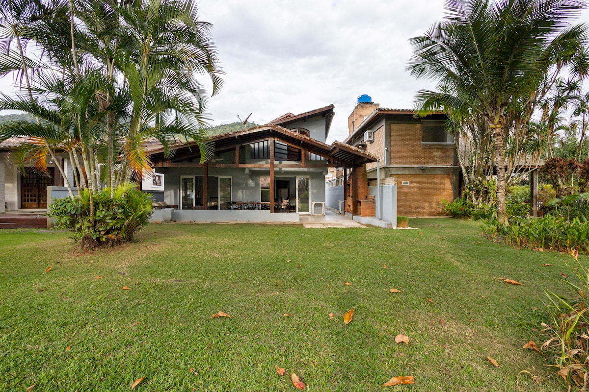 Propriedade pé na areia em frente a praia com lindas vistas e amplo jardim. A casa possui vista para o mar de todos os ambientes, desde da mesa de café da manhã, até no conforto da cama. Localizada em uma ARIE(área de relevante interesse ecológico), onde está o Instituto de pesquisas marinhas da Usp . Acesso à propriedade e a 2 praias controlado por terra. Em frente a praia existe um bar flutuante para embarcações e pode existir musica.