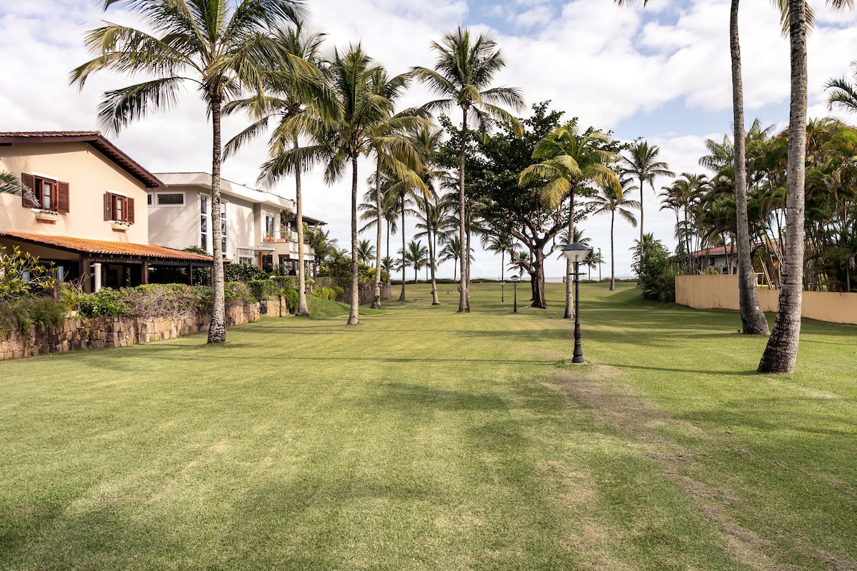 A casa esta localizada em um condomínio fechado a 100 mts do mar. Da casa saindo pela área da varanda se caminha alguns passos p o jardim e vc tem visão do mar , a casa está localizada numa quadra que não tem entrada pública ficando o local mais reservado. A quadra possue um jardim limpo e arborizado, que leva o hospede ate a praia ! Da sala da casa se ve o gramado e se ouve o canto dos pássaros e é possível ouvir o barulho do mar!