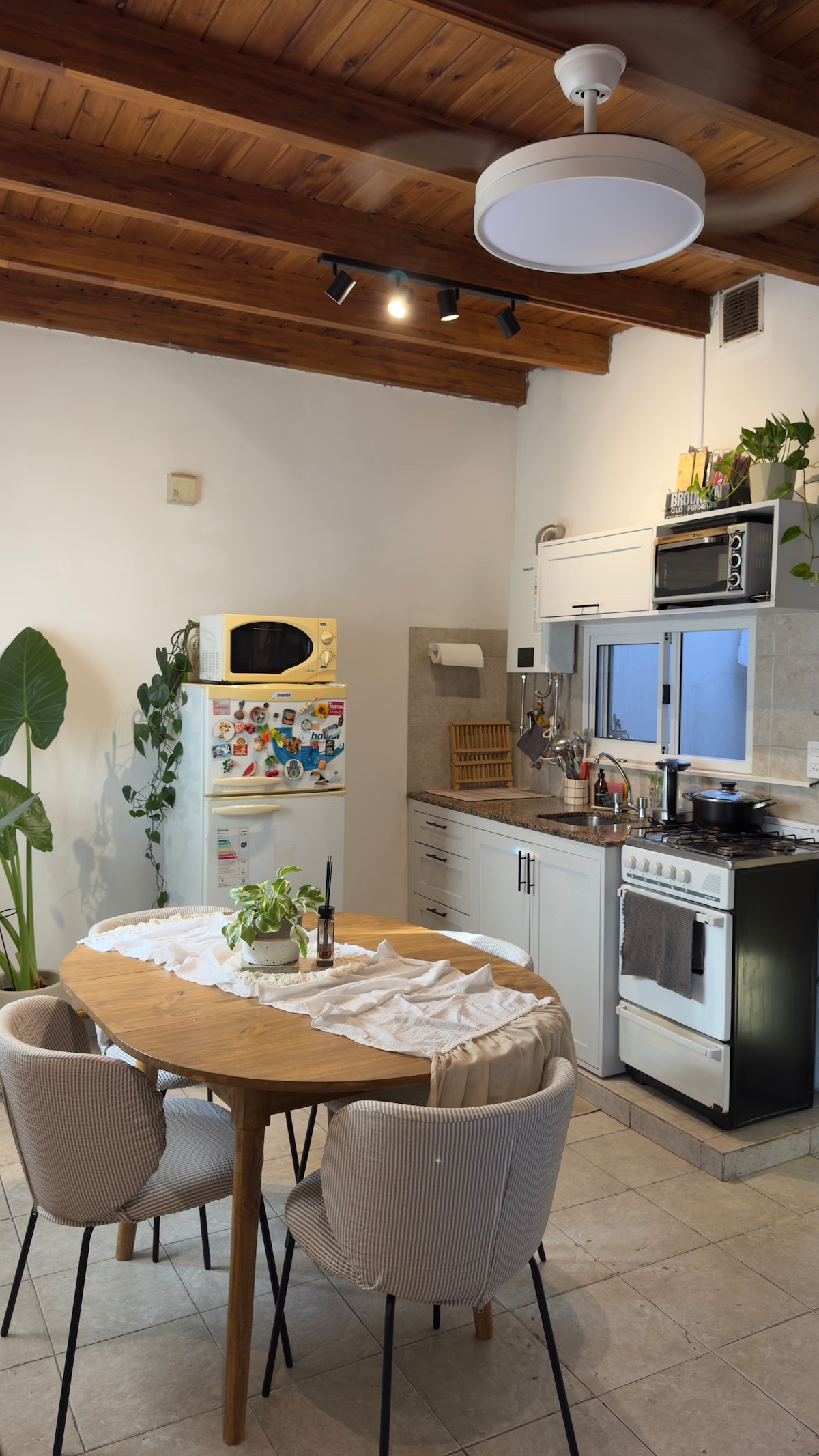 Departamento acogedor en edificio tranquilo de solo 10 unidades. Ubicado en primer piso con balcón al frente, ofrece un espacio luminoso y funcional de 30 m². Cuenta con cocina equipada, heladera, microondas, aire acondicionado, Smart TV de 32”, Wi-Fi y cochera. Incluye desayuno seco de cortesía, ideal para comenzar el día. Un lugar cómodo y cálido, perfecto para descansar o trabajar.