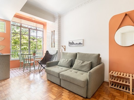 ¡Diseño, funcionalidad y comodidad! Déjate deslumbrar por este minipenthouse en la montaña Pan de Azúcar. Con carpintería innovadora y llena de tecnología, se encuentra en una calle tranquila en Urca, el barrio más seguro y encantador de Río. Este apartamento se transforma en varios ambientes con sistemas simples, prácticos y creativos. Diseñado y hecho a mano por el ingeniero civil propietario, disfruta de mucha comodidad en solo 25 m² (270 pies cuadrados), con todas las comodidades que ofrece un hogar.