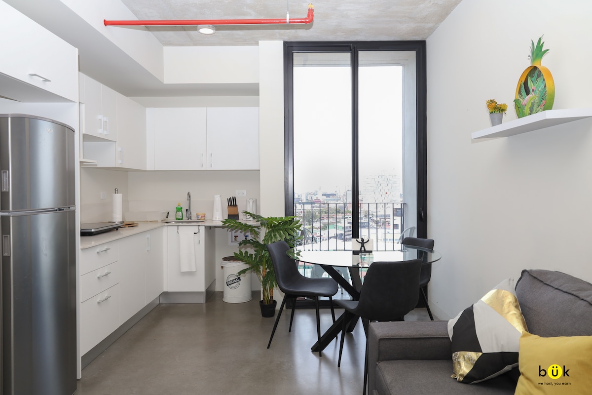 Lujoso condominio en el piso 26 en el corazón de Barrio Escalante, San José, Costa Rica. Totalmente amueblado con 2 habitaciones, 2 baños, cocina moderna, lavadora/secadora y Smart TVs HD. Disfruta de las comodidades de URBN Escalante: lobby 24/7, piscina temperada, gimnasio y cercanía a los mejores restaurantes, cafés y vida nocturna. Ideal para viajeros o nómadas digitales que buscan comodidad y estilo. Estancias de 6+ días permiten visitas de invitados.