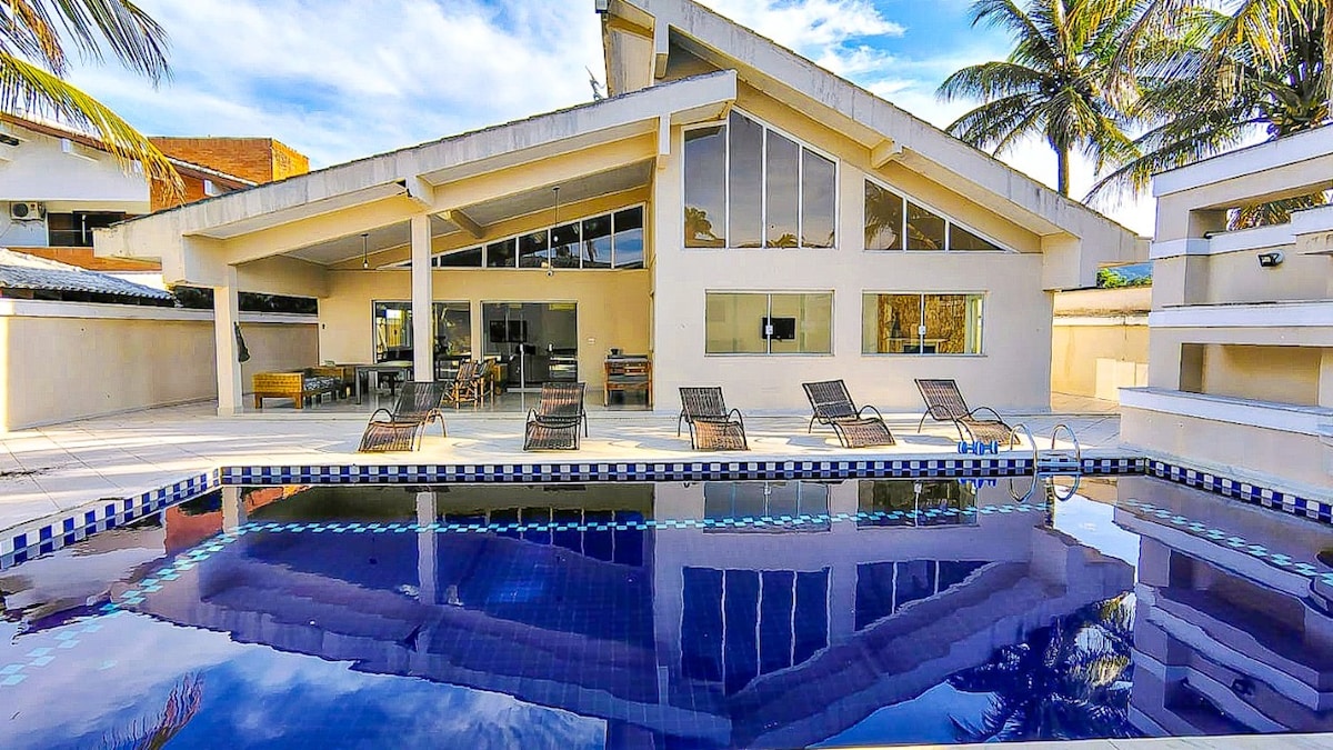 Acogedora casa con piscina, barbacoa, horno de leña y chimenea. Situada en el mejor condominio de Guarujá. La casa está amueblada y con todos los utensilios domésticos. Aire acondicionado en todas las habitaciones. Todas las habitaciones son suites y tienen ropa de cama y toallas. La casa se encuentra cerca de la playa, el mercado y los bares. Conserjería y seguridad las 24 horas.