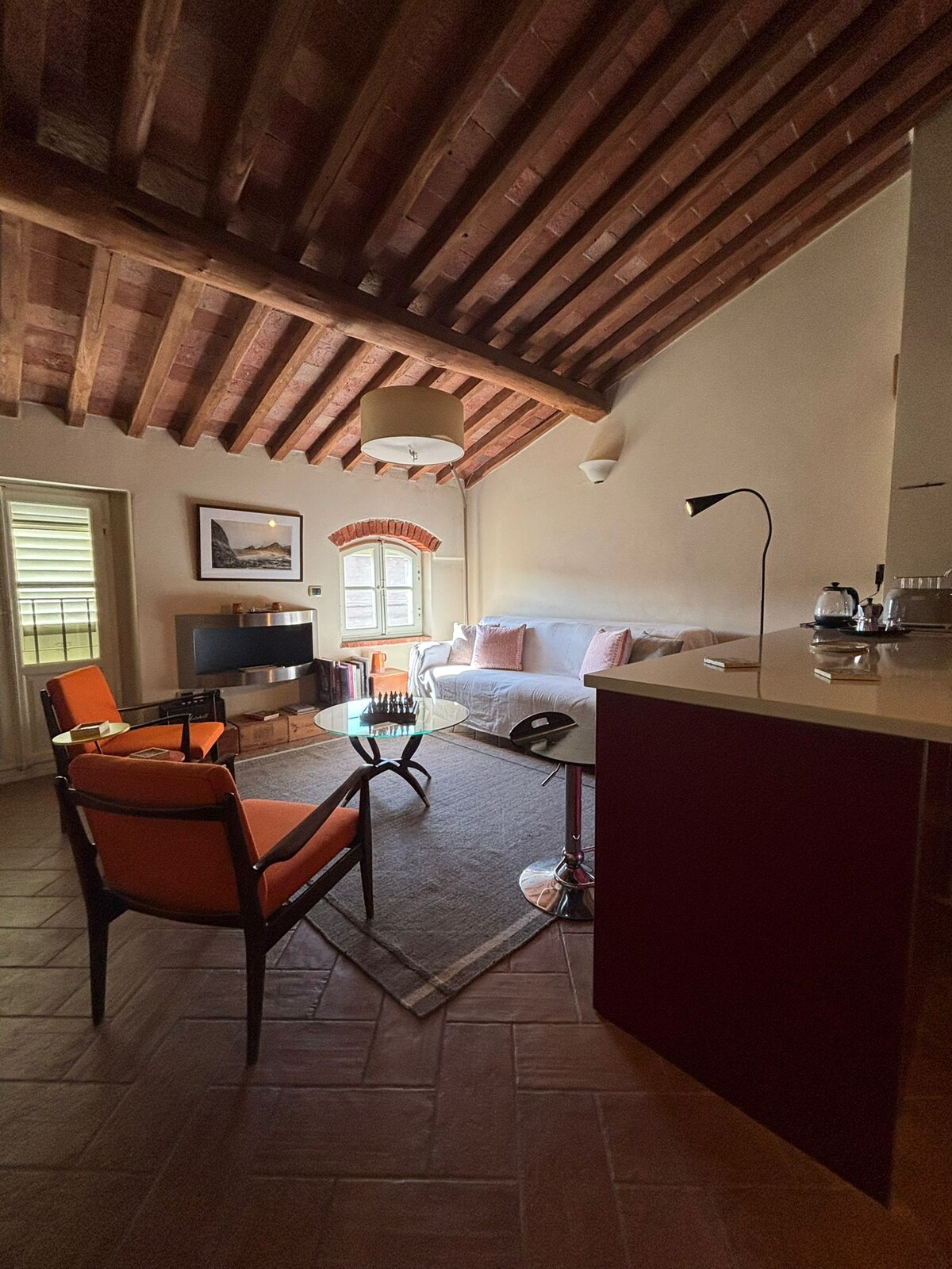 En un edificio histórico (1600), terraza con vistas espléndidas sobre los tejados rojos de Lucca. Apartamento reformado por un diseñador, situado en el 3.er piso, cuenta con todas las comodidades necesarias para hacer que su estancia sea inolvidable y cálida. Situado en el centro histórico de Lucca, cerca de todos los lugares de interés, en una zona tranquila y sin ruido; base perfecta desde donde llegar en pocos pasos a todos los lugares de Lucca. ¡Lucia es una anfitriona especial que os ayudará de manera perfecta!