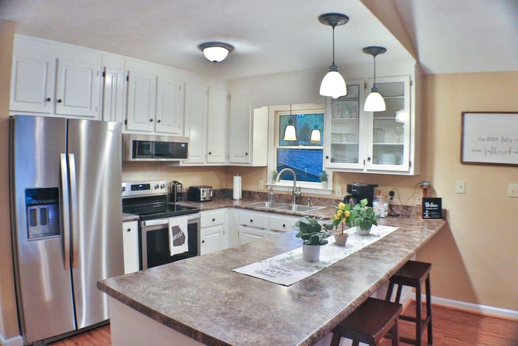 A minutos de Toccoa Falls o del lago Hartwell, esta ubicación privada es como nueva y te espera para que crees recuerdos para toda la vida. Esta propiedad de un solo nivel cuenta con estacionamiento cubierto y lavandería completa. La cocina/comedor/sala de estar de concepto abierto es abierta y acogedora para reunirse con familiares o amigos. La suite principal cuenta con una bañera vintage con patas. El patio amueblado y el patio trasero arbolado son bastante tranquilos para una comida al aire libre o un pícnic con vistas al atardecer. ¡Las despedidas de soltera son bienvenidas a este retiro!