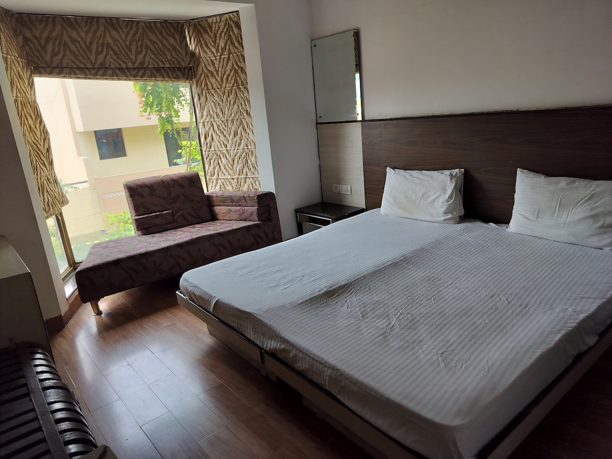 ¡Bienvenido a tu hogar lejos de casa! Nuestra habitación tamaño queen de lujo ofrece una mezcla perfecta de lujo, comodidad y conveniencia. Alójate a pocos minutos del Hospital Artemis, la carretera del campo de golf y la estación de metro Sector 54 Chowk, lo que garantiza una conexión perfecta con la ciudad. Damos la bienvenida a ciudadanos extranjeros.