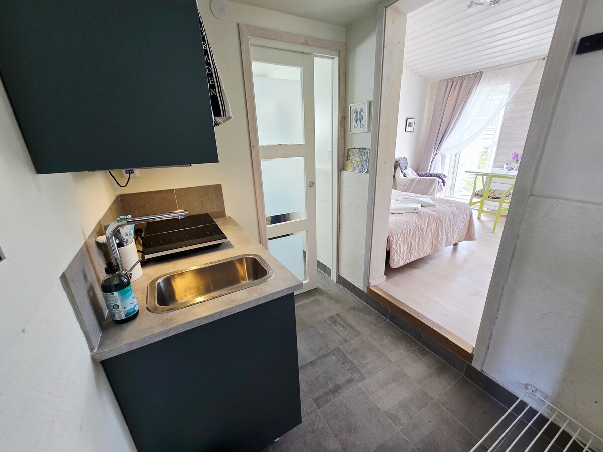 Minicasa de nueva construcción en la hermosa Gustavsvik, Nacka. Cerca de la naturaleza y a poca distancia a pie de varias playas. Tiempo de viaje a Estocolmo C a unos 45 minutos en autobús o 20 minutos en coche. La casa se encuentra en la misma propiedad que la villa del propietario, pero está separada y cuenta con su propia parcela, que incluye terraza, césped y su propio acceso con estacionamiento para automóviles. La casa está bien equipada con, entre otras cosas, calefacción por suelo radiante en todas las habitaciones, baño totalmente de azulejos, amplia cocina con espacio para los huéspedes. Hay 4 lugares para dormir con una cama doble y un sofá cama doble. Un montón de espacios de almacenamiento.