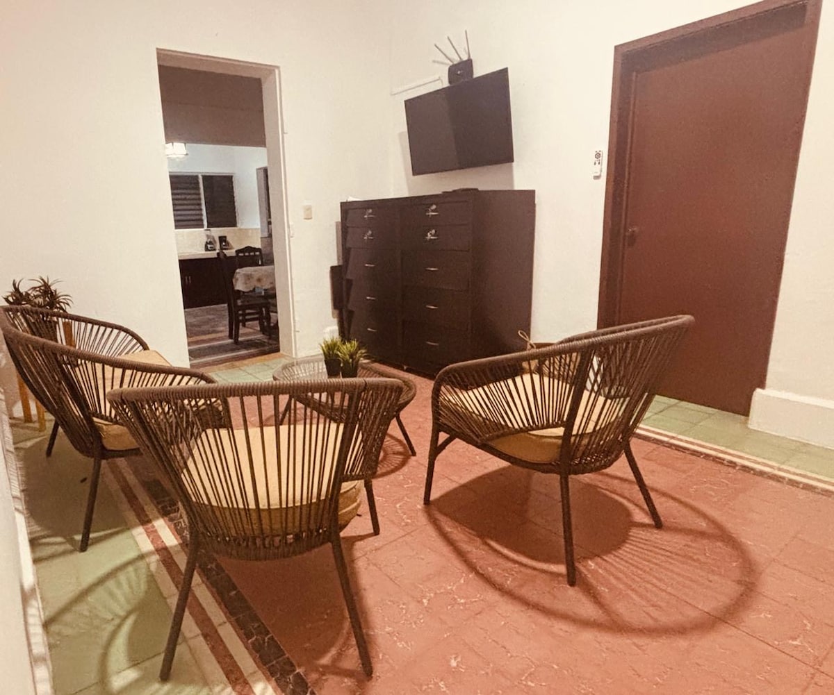 Departamento céntrico a solo 5 min del primer cuadro de la ciudad, acogedor y muy seguro. Servicios: TV con servicio Megacable WiFi ilimitado Aire acondicionado Ventiladores Agua caliente Plancha Ganchos