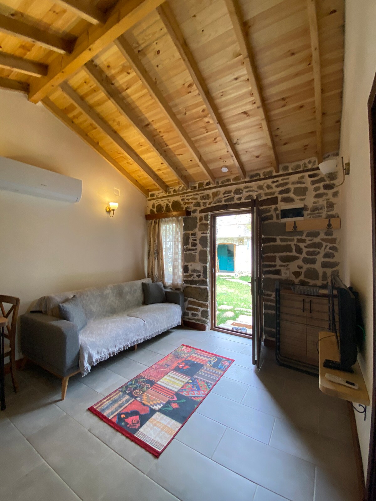 Si te alojas en nuestra casa de piedra, que se encuentra en una ubicación céntrica y a 200 metros de la pastelería Meydani, estarás cerca de todas partes en familia. Tenemos tumbonas y sombrillas gratuitas en la playa de Aydıncık Surfiin para estancias de 3 días o más.