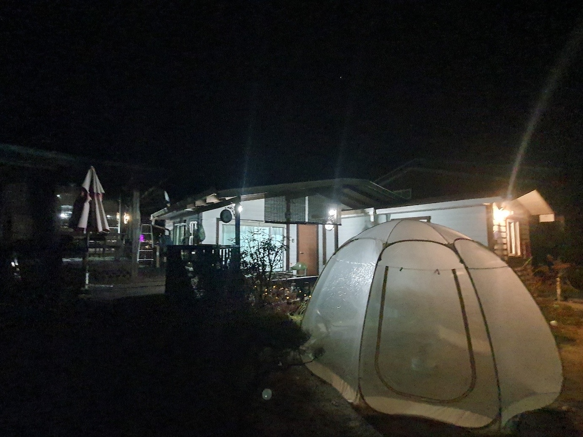 Hola, somos Onda, investigando y proporcionando varias áreas de descanso. Espero que todos los que se queden aquí pasen un rato cómodo y feliz. [Introducción del alojamiento] Rodeado por un valle privado a gran escala y un bosque justo enfrente del glamping, puedes ver la pintoresca vista. Es un sitio de glamping nuri a la luz de las estrellas ubicado a 10 minutos en coche del Morning Calm Arboretum. Si estás planeando sanación y hermosos recuerdos en un entorno natural limpio donde el río (valle) y las montañas de las estribaciones de la montaña Chungnyeongsan en la zona limpia de Gapyeong, es el campamento Gapyeong Starlight Nuri. [Tipo de habitación] Tipo de una habitación (2 camas dobles + 1 inodoro) * La ropa de cama se proporciona de acuerdo con el número de personas reservadas.