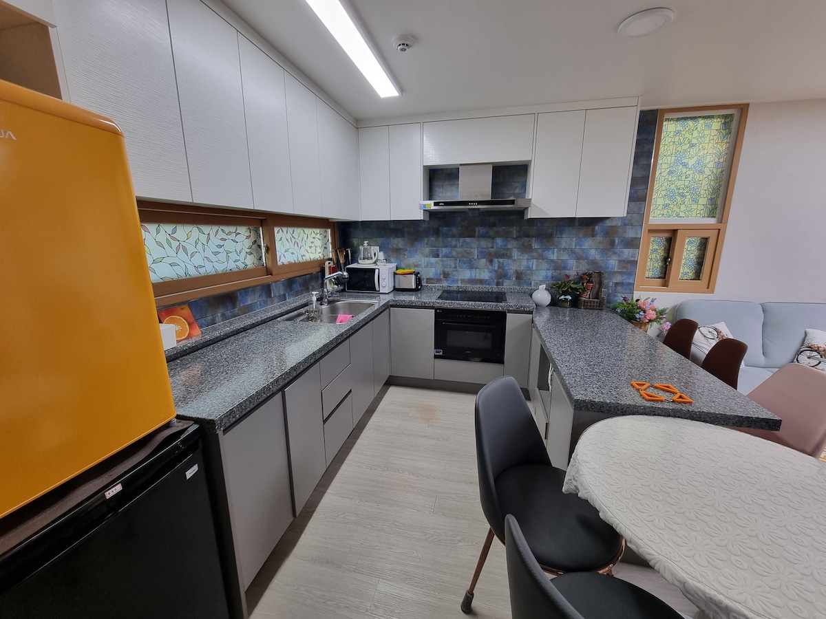 A 40 minutos de Jamsil, si quieres escapar de la ajetreada vida cotidiana y buscas un descanso perfecto y sanación con el aire fresco y la comodidad de una casa espaciosa, te recomiendo visitar "Goyohan Morning". El jardín que el anfitrión gestiona directamente está lleno de flores que combinan con la primavera/verano/otoño, y los peces viven en el estanque, es "Goyohan Morning" en medio de las montañas con un fuerte sonido verde donde se puede sentir plenamente cada encanto en cada estación :) La mañana tranquila es un lugar atractivo con un amplio patio delantero donde los niños pequeños pueden jugar con seguridad después de mucho tiempo, y una barbacoa privada donde se puede comer cómodamente sin preocuparse por el olor, ya que está separada del alojamiento. En particular, se ha maximizado aún más la comodidad al crear un nuevo baño en esta barbacoa. :) Hay suficientes utensilios de cocina y condimentos simples para los huéspedes.