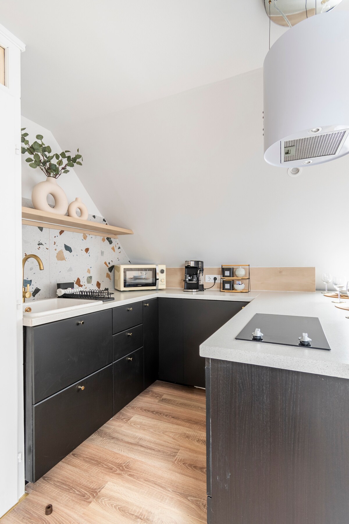 Inspirado en el estilo italiano, nuestro edificio de apartamentos se inspira en un papel pintado especial y único que también define la atmósfera de los interiores. El interior moderno y armonioso ofrece acabados cómodos, colores cuidadosamente seleccionados y el uso de materiales de calidad. El diseño elegante y los detalles proporcionan un ambiente acogedor y elegante para relajarse. Tanto si se trata de una escapada corta a la ciudad como de una estancia prolongada, nuestros apartamentos son la opción perfecta para los huéspedes.