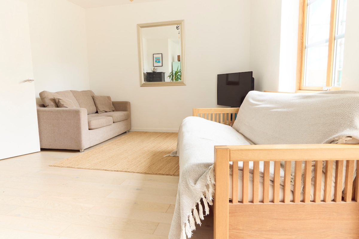 Un apartamento inteligente de un dormitorio, tranquilo y lleno de luz, con un balcón orientado al este y al sur a solo unos pasos del canal. Ubicado en el piso superior de un bloque moderno con ascensor. Cuenta con un amplio dormitorio doble, una luminosa sala de estar abierta y una cocina con electrodomésticos integrados, un elegante baño y un amplio balcón perfecto para tomar el sol. Estás a pocos minutos del canal y a pocos pasos del mercado de Broadway, Shoreditch y Dalston. El mercado de flores de Columbia Road está a pocos pasos.
