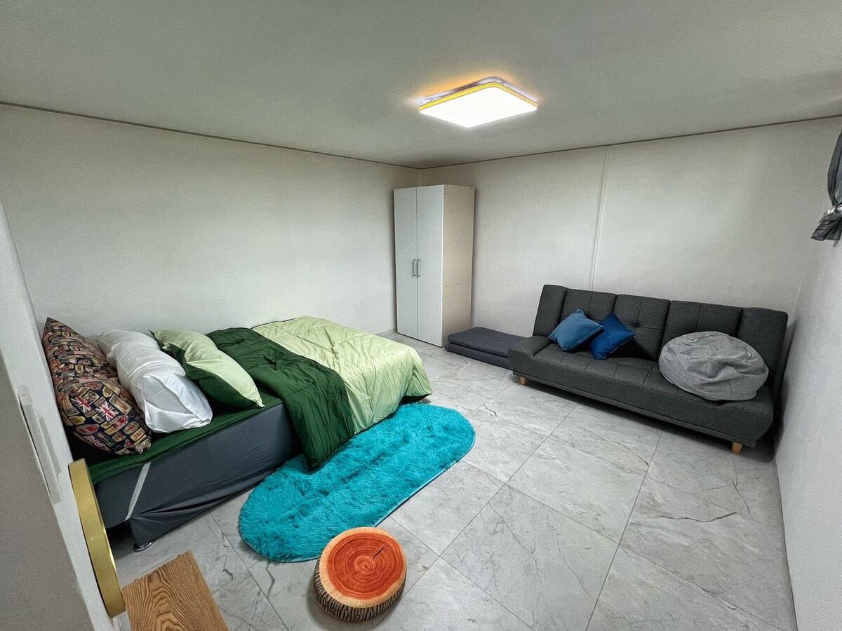 ๋งค๋ด๊ธธ199๋ ํ๋ฃจ 1๊ฐ ํ๋ง ์๋ฐ์ด ๊ฐ๋ฅํ ๊ธ๋จํ ๋ถ์๊ธฐ์ ๋ ์ฑ ๋ฏผ๋ฐ์ ๋๋ค. ์ฃผํ 1๋๊ณผ ์นด๋ผ๋ฐ 1๋์ผ๋ก ๊ตฌ์ฑ๋์ด ์๊ณ ์ต๋ 8์ธ๊น์ง ์ค๋ด ์๋ฐ์ด ๊ฐ๋ฅํฉ๋๋ค. ์ฌ์ ์ฐ๋ฝ ํ ํ ํธ๋ฅผ ์ค๋นํด ์ค์ค ๊ฒฝ์ฐ 8์ธ ์ด์์ ์๋ฐ๋ ๊ฐ๋ฅํฉ๋๋ค. ์ด 280ํ ๋์ง์์ ํ๋ก๋, ํธ๋จํ๋ฆฐ, ๋ฐ๋นํ ๊ทธ๋ฆด, ์์ฟ ์ง ๋ฑ์ด ์ค์น๋์ด ์๊ณ ์ฌ์ดํธ ๋ฐ๋ก ์ ๋ฐ๋ท๊ฐ์์๋ ๋์๋ ์ฆ๊ธธ ์ ์์ต๋๋ค. ๋งค๋ด๊ธธ 199์์ ๊ฐ์กฑ, ์น๊ตฌ, ์ฐ์ธ๊ณผ ํจ๊ป ํ๋ผ์ด๋นํ ์ถ์ต ๋ง๋ค๊ณ ๊ฐ์ธ์! (Check in-3PM, Check out - 12PM)