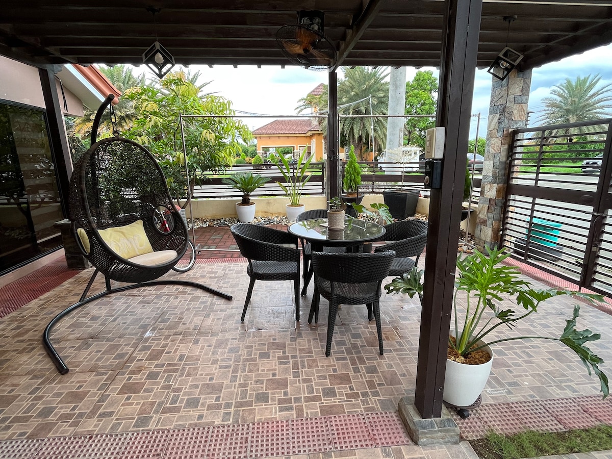 Our cozy guest house is less than 2 kilometers away from fastfood chains (McDonald's, Jollibee), supermarkets and local restaurants (Bubusok, Ningnangan). A convenience store is less than 200 meters away! Grab and Food Panda are available in the area!! Distance to other points of interest: Mula De Victoria: 220 meters Pampanga Pottery and Agritourism Park: 650 meters SM Pampanga: 9 kms Guest house is surrounded by plants and trees. Insect repellant is strongly recommended if not a must.