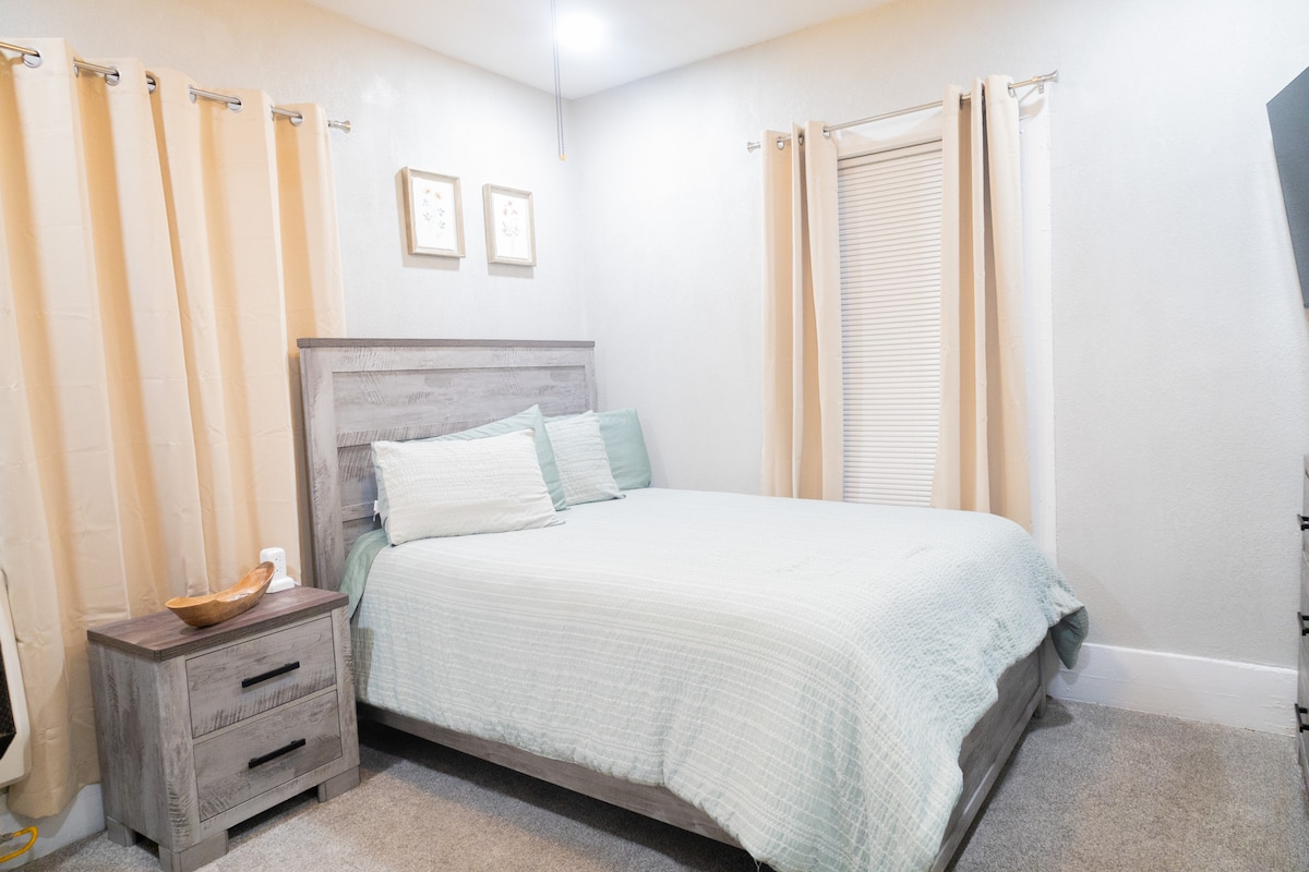 ¡Bienvenido! Ubicado en un barrio residencial. Hemos decorado el apartamento con una mezcla de muebles modernos y vintage para crear un ambiente relajante. Cómodas camas, sábanas frescas y una cocina totalmente equipada para preparar comidas. NO hay lavadora/secadora en las instalaciones. La lavandería está cerca. El patio trasero tiene muebles de césped y una mesa para disfrutar de una comida al aire libre o la sombra de la noche. NO se admiten mascotas/animales. Solo se permite fumar en el patio trasero. Estas normas hacen que todos los huéspedes se sientan cómodos. ¡Gracias!
