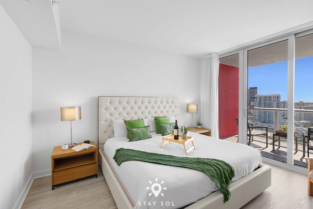 Escápate a Hallandale Beachwalk Getaway, un refugio moderno a solo unos pasos de la playa. Perfecto para parejas o viajeros solitarios, este luminoso apartamento incluye 1 acogedor dormitorio, 1 elegante baño, una cocina, una sala de estar y un balcón privado con vistas serenas. Los huéspedes también disfrutan de una piscina en la azotea con vistas panorámicas. Pasa tus días bajo el sol de Florida, explorando las tiendas y restaurantes de Hallandale, o haz un corto viaje en coche a Miami o Fort Lauderdale. El lugar perfecto para relajarte y crear recuerdos.