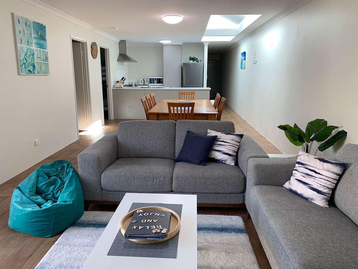 Relájate en familia en este tranquilo y elegante apartamento junto a la playa situado a menos de 100 metros de la playa. Vistas al mar desde la mayoría de las ventanas y zonas exteriores. Prepara una barbacoa mientras disfrutas de las vistas de la costa de Mandurah y la bahía Blue o simplemente siéntate y relájate mientras disfrutas del paisaje. Da un relajante paseo por la playa, nada, haz surf o simplemente disfruta de las increíbles puestas de sol o de las muchas oportunidades para ver delfines. A pocos pasos de Tods Café (6 minutos) para disfrutar de excelentes comidas y café. ¡Comparte la vida de playa!