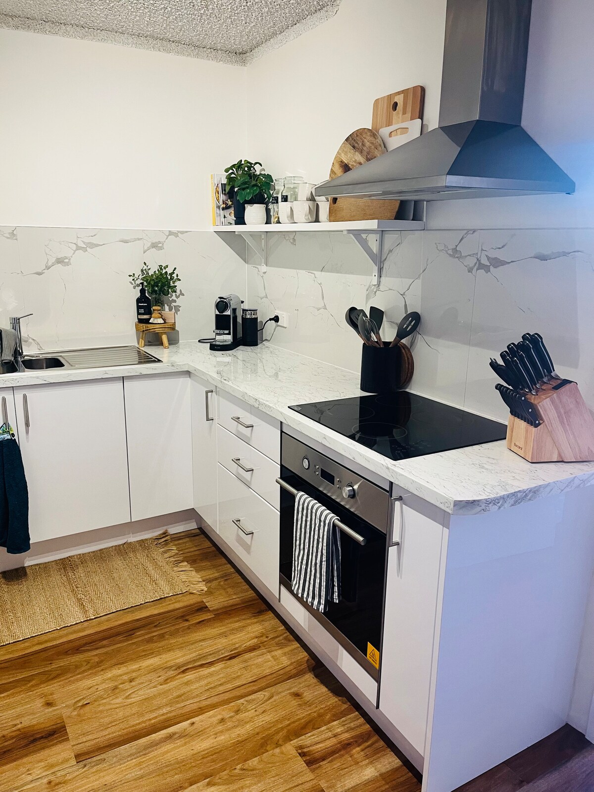 Nuestro alojamiento tiene vistas al agua y está a poca distancia a pie de cafeterías, tiendas y la playa. Te encantará nuestro alojamiento por el enorme balcón, las vistas al agua, el interior moderno y las cómodas camas. Nuestro alojamiento es ideal para una o dos parejas, aventureros solitarios y viajeros de negocios. No es adecuado para niños pequeños, fiestas o reuniones, ya que tenemos vecinos muy cerca por encima, por debajo y a ambos lados. Muchas gracias por tener en cuenta el factor ruido cuando te hospedes en nuestro apartamento.