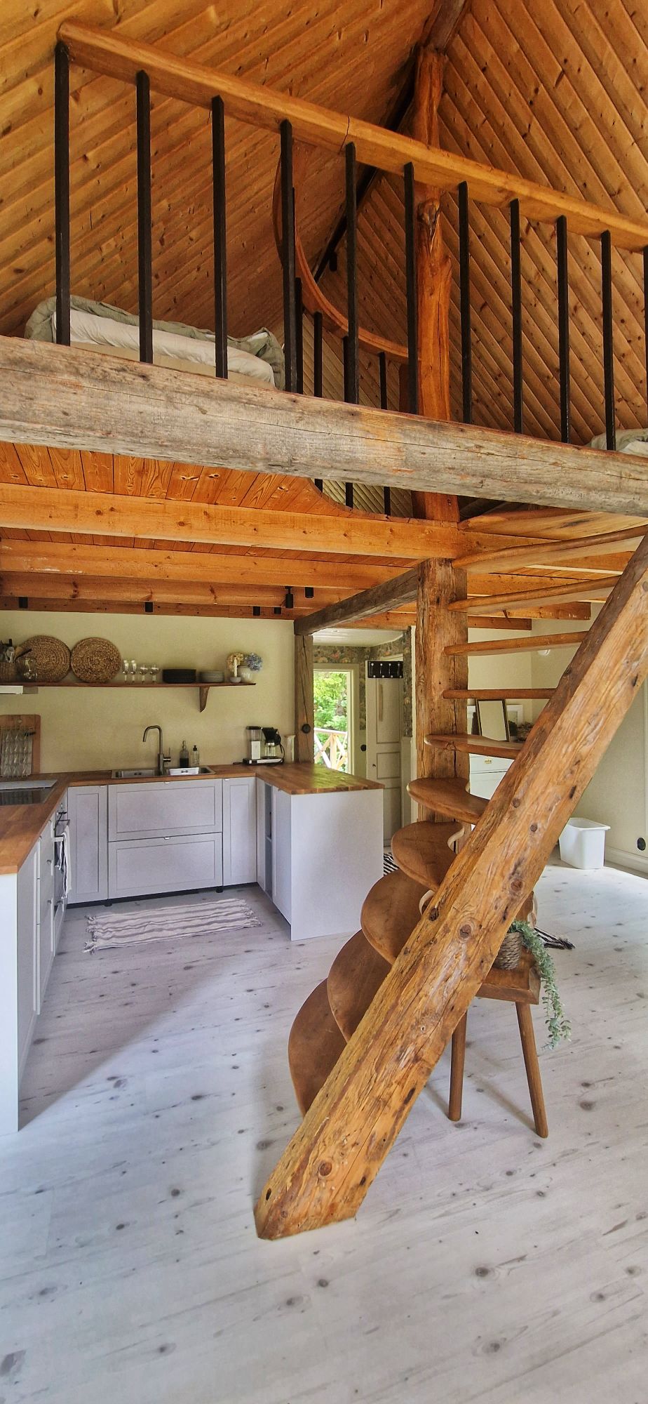 Estudio muy fresco y luminoso en la segunda planta con cocina, mesa de comedor, cama doble y sofá cama. Salida de la habitación a terraza propia con vistas al oeste y al bosque y un campo. El baño con ducha está en la primera planta. A 5 km hay dos lagos con playa, a 15 minutos en coche de las playas de arena de la bahía de Lahoms, cerca de bosques y parques naturales. A unos 30 minutos en coche de la estación de esquí de Vallåsens en Hallandsåsen. Hay disponible una cuna de viaje para bebés.