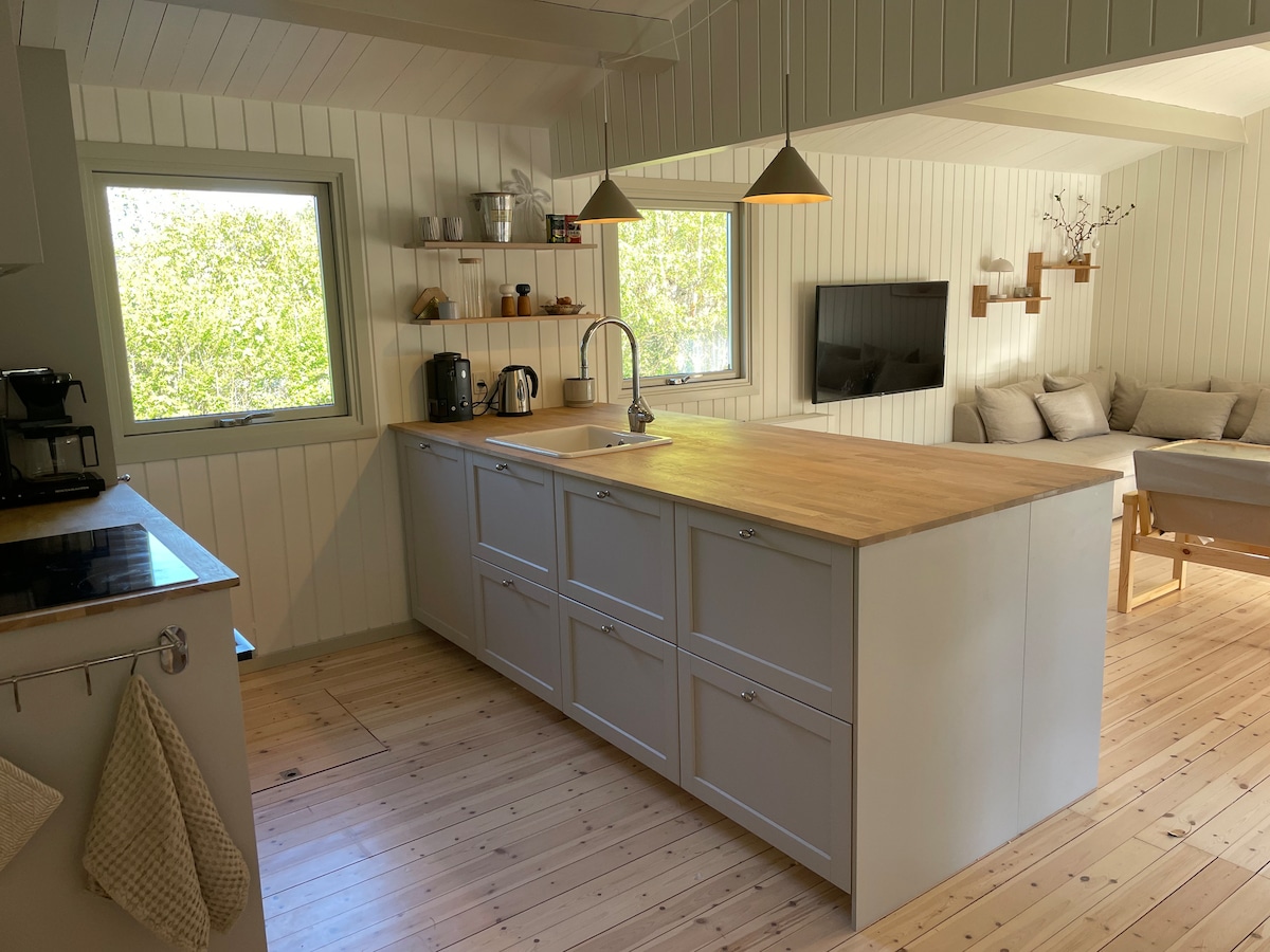 «Egehytten» es una de las 5 cabañas bellamente ubicadas en el borde del bosque hasta una casa de corredor forestal. Un lugar bueno y cómodo para alojarse en una zona pintoresca con la oportunidad de grandes experiencias en la naturaleza. Rutas de senderismo marcadas en el bosque. A poca distancia a pie/en bicicleta de una playa única en la histórica e idílica Kikhavn. Buenas oportunidades de pesca. El vecino más cercano (a 300 m) es la granja de visitantes y la granja de productos lácteos Tothaven con lindos animales y cafetería. Con cita previa, hay una opción para el tratamiento de acupuntura, así como para enseñar qi gong y tai chi en el lugar.