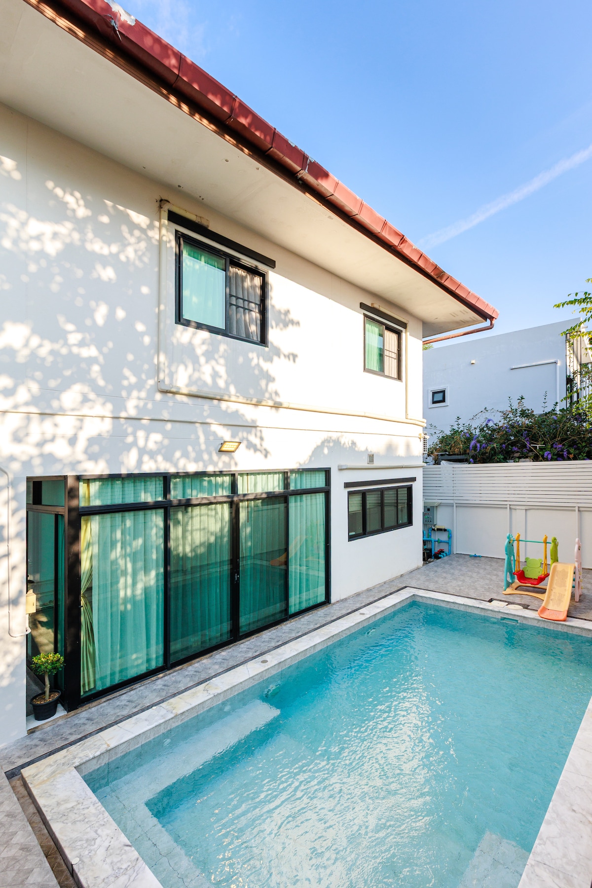 Experience modern Scandinavian style in this spacious home, complete with a large garden, outdoor dining, and a chicken coop for fresh eggs daily. Located just 7 minutes' walk to the Old City and close to the Saturday Night Market, this home offers comfort and convenience in Chiang Mai. - **Location**: 7 min walk to Old City, near Saturday Night Market - **Garden**: Big outdoor space with a chicken coop - **Amenities**: Smart TV, washer, dryer - **Convenience**: 5 min drive to the airport