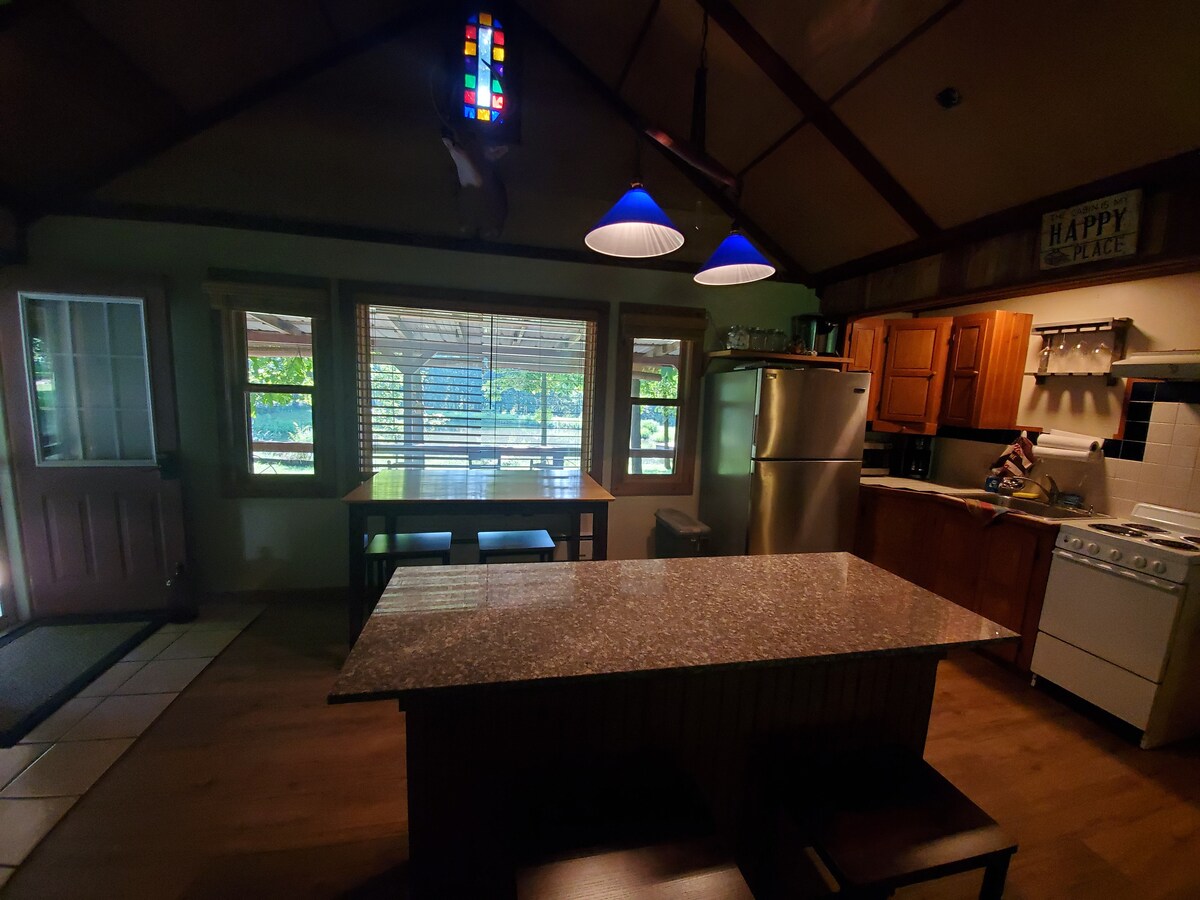 This Mark Twain Lake Cabin is right in the middle of the Route J corridor. Just 2 minutes from both the dam and Blackjack Marina, it has perfect access! Whether you just need a landing pad for work or a cool, inviting hang out- this studio style cabin has you covered. The covered patio is where nights can be spent around the fire or watching the outdoor television. For hot summer days, jump in the above ground pool! The cabin is a studio with a queen size bed & king air mattress included!