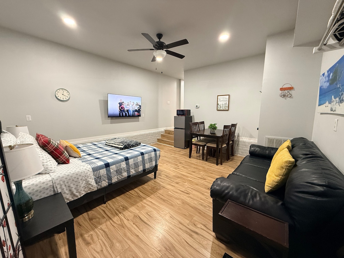 Ubicada en la tranquila esquina trasera de nuestra propiedad, esta acogedora casa de huéspedes ofrece la escapada perfecta. Con una cama Murphy, loft de lectura, cocina completa, escritorio y terraza privada, cuenta con todo lo que necesitas, incluido baño completo, TV e internet. A solo 15 minutos del centro de Richmond y cerca del río James y de los parques locales, es ideal tanto para aventuras en la ciudad como para explorar al aire libre. Un retiro sereno con comodidades modernas, perfecto para una escapada relajante o una estancia productiva.