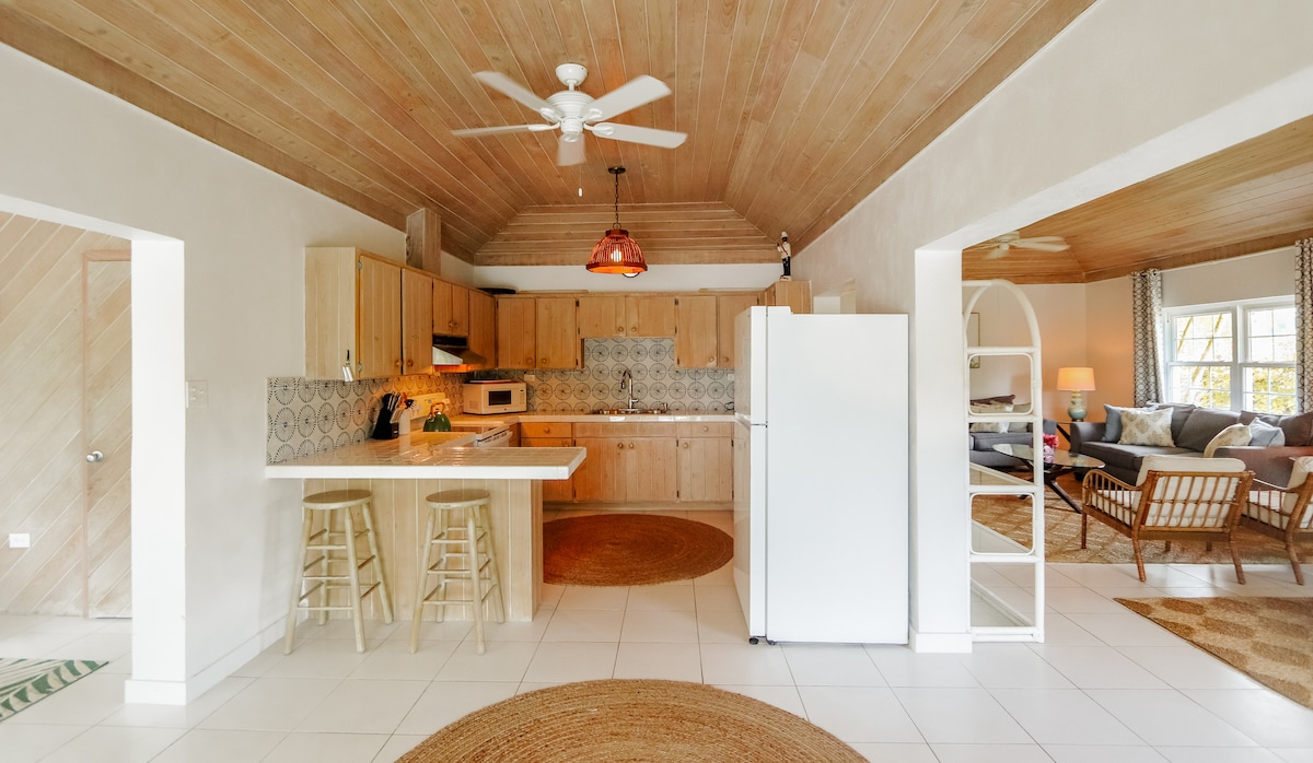 Experimenta la vida isleña en todo su esplendor en nuestro elegante y espacioso Airbnb en Harbour Island, Eleuthera. A solo 3 minutos de la impresionante playa de arena rosa y a pocos pasos de una tienda de comestibles, este moderno refugio tiene capacidad para un máximo de 4 personas con 2 camas individuales, un dormitorio tamaño king, cocina completa, baño y sala de estar. Disfruta de 2 televisores inteligentes grandes, ropa de cama acogedora y todos los utensilios básicos de cocina. ¿Necesitas una bicicleta eléctrica? Te ayudaremos. Relájate con estilo y comodidad: ¡tu escapada perfecta a la isla te espera!
