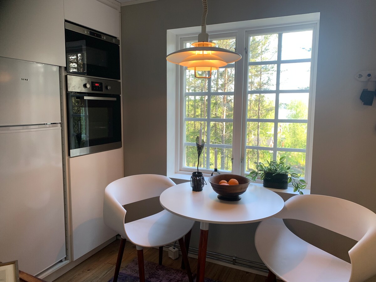 Casa de diseño arquitectónico construida en 1978 en una zona cercana a la ciudad. Amueblada en estilo antiguo, artística y con estufa de azulejos y chimenea. Hermosas vistas de Härnösand y Nattviken, el puerto de Härnösand. Bien situado cerca de la E4 y el centro de Härnösand. Hay una sauna de infrarrojos. Hay una terraza tanto en la parte delantera como en la trasera de la casa. Alojamiento para hasta 10 personas, 8 camas y un sofá cama. A poca distancia del centro de Härnösand, con tiendas, cafeterías, restaurantes y el hermoso Östanbäcken (casillad (casco antiguo).