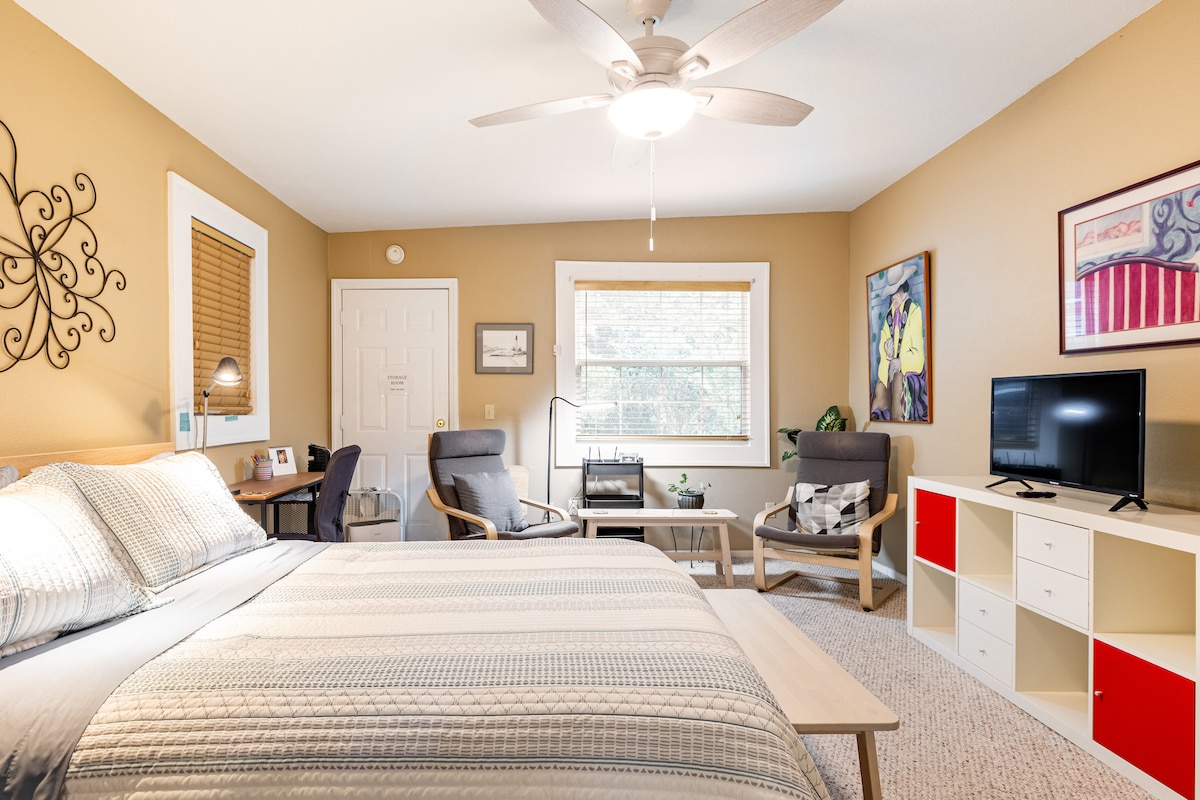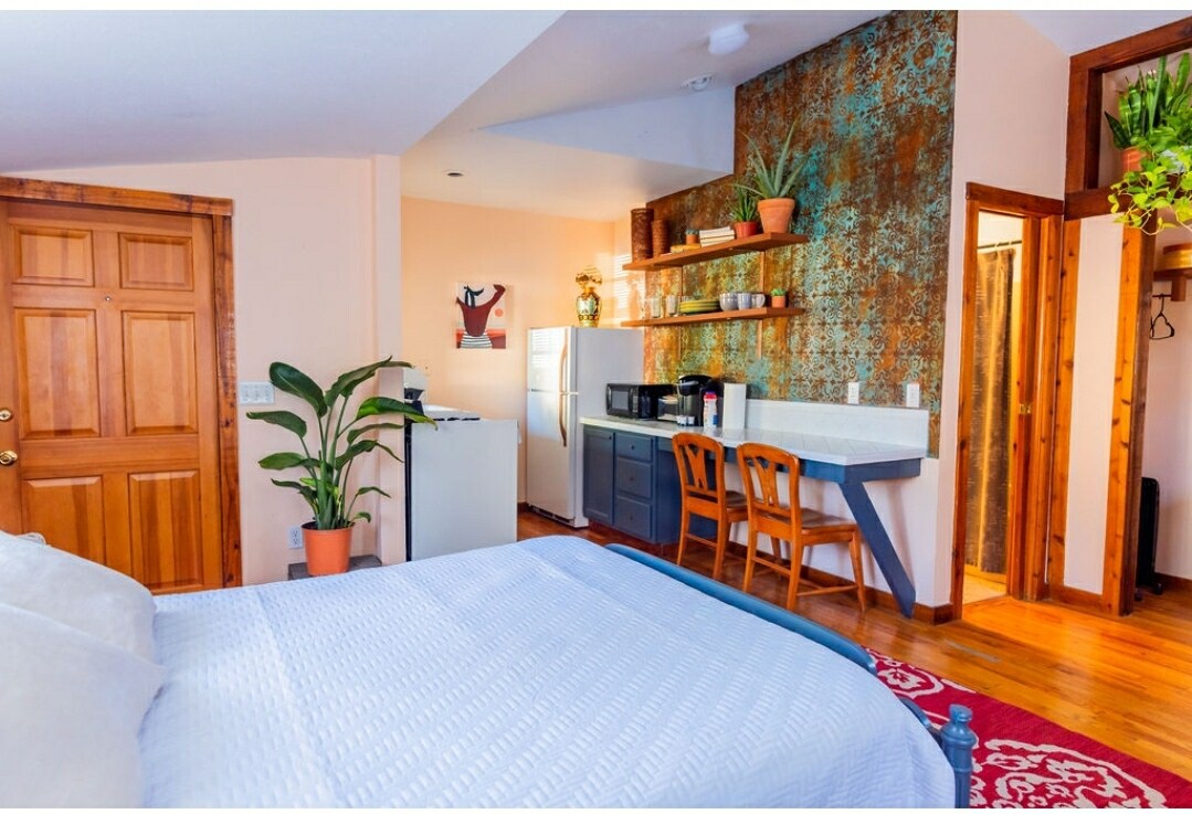 Nuestro acogedor refugio urbano en la selva te sitúa en el corazón de un impresionante distrito gastronómico y tiene una ubicación céntrica. Estarás a poca distancia en coche/a pie de docenas de restaurantes diversos y varias salas de conciertos. Nuestra suite independiente es ideal tanto para viajes de negocios (a 5 minutos del centro de la ciudad) como de placer (a 30 minutos de los parques temáticos). La habitación principal de la suite tiene espacio para descansar, un bar y un pequeño escritorio. Se conecta a una habitación con cama tamaño queen y baño privado.