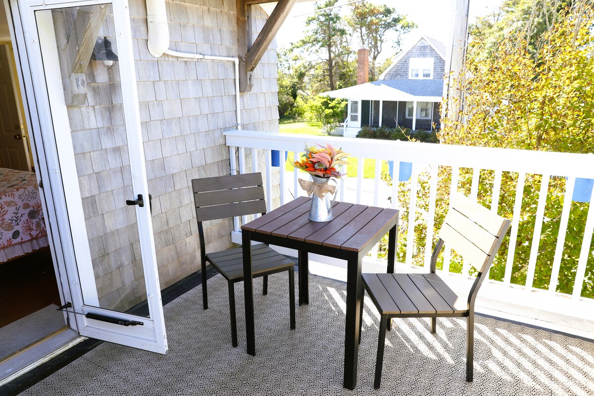 Todas las habitaciones están decoradas con temas de jardín. Esta pintoresca habitación en el bed and breakfast incluye una cama tamaño queen y tiene un encantador balcón con una vista parcial al mar del Nantucket Sound. Tiene capacidad para dos personas cómodamente y se encuentra en el tercer piso de la posada. No hay ascensor.