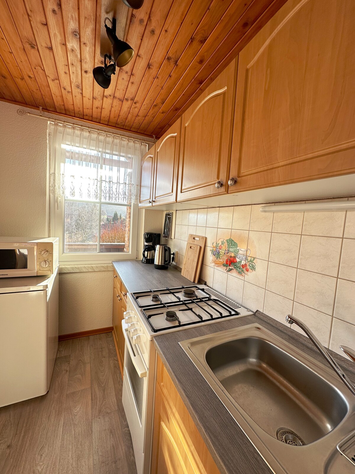 Alquiler principal de marzo a noviembre. En invierno, nuestra pequeña estufa hace que el alojamiento sea muy acogedor, aunque también hay calefacción, por supuesto. Debajo del techo inclinado hay una cocina americana equipada para preparar platos sencillos y café/té. En el baño, ducha y WC; en el dormitorio, una cama de madera de 140x200 cm con un nuevo colchón más alto + sobrecolchón y 1 armario. En el salón hay un sofá de esquina que ofrece espacio para dormir a 1 persona, 1 sillón, TV y una mesa de comedor para 3 personas. Wifi disponible.