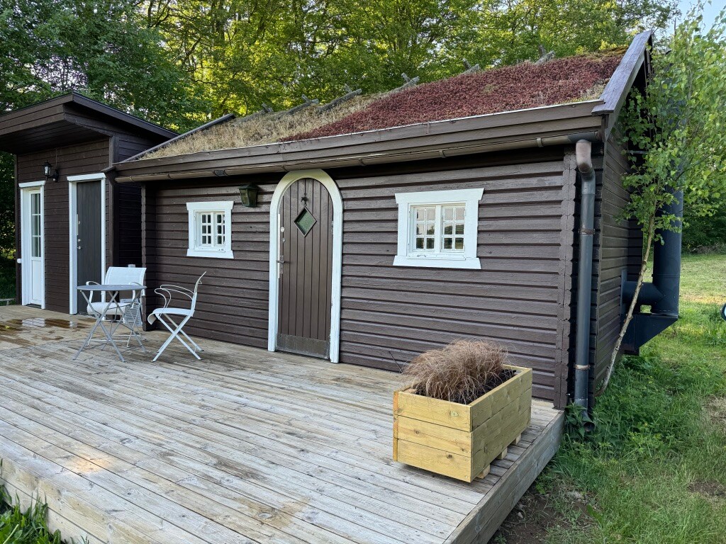 Cabaña fresca, acogedora y de nueva construcción, con cocina totalmente equipada para el autoservicio. Pequeño aseo y ducha, TV, sofá esquinero que se convierte en una cama doble de 140 cm de ancho. Sábanas, toallas, toallas de baño y limpieza incluidos. Pequeño solárium amueblado con posibilidad de hacer barbacoas. Aparcamiento gratuito en el sitio. La cabaña está situada junto a nuestra casa, en el centro de Hässleholm, a 10 minutos a pie del centro y a 5 minutos de los grandes almacenes y restaurantes.