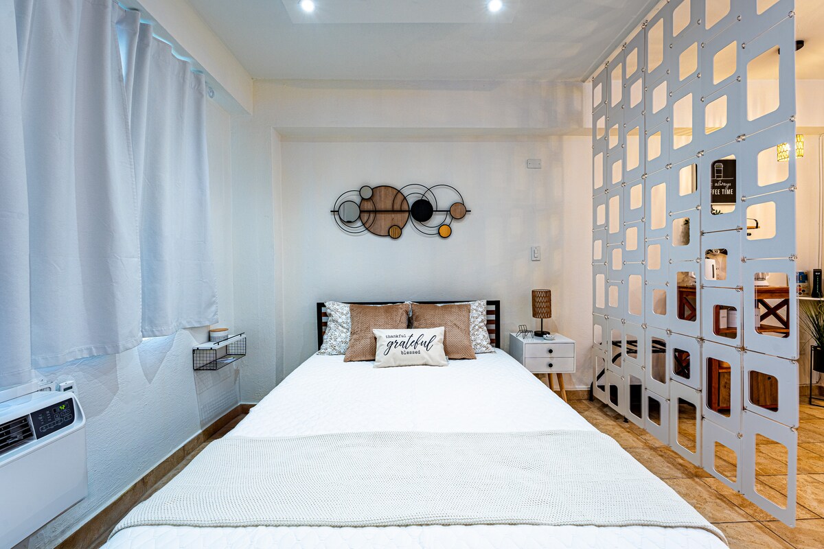 Estudio privado ¡Cerca de todo! ✨ Disfruta de una estancia moderna y acogedora, su propia entrada y una encantadora zona de patio de recepción. Perfecto para parejas o viajeros solitarios, este estudio cuenta con: ✔ Cómoda cama tamaño queen para una noche de descanso Cocina ✔ pequeña para comidas ligeras Área de trabajo ✔ dedicada con escritorio y wifi gratuito ✔ Baño completo espacioso ✔ Cubo de hielo y 2 toallas y sillas de playa Aparcamiento ✔ en la calle, siempre disponible ✔ Planta baja para facilitar el acceso ¡Alójate en el corazón de Hato Rey, a pocos minutos de todo!