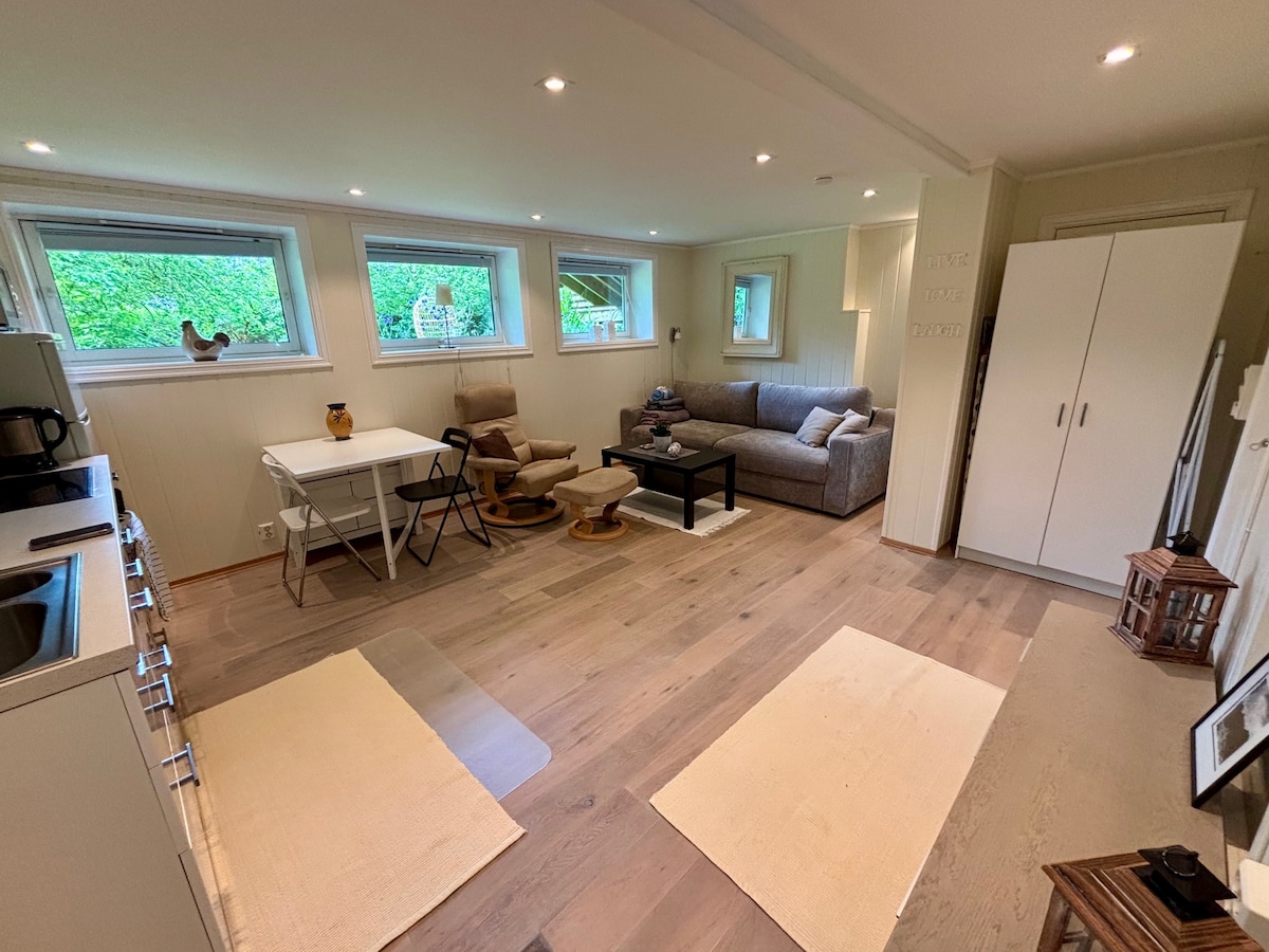 Disfruta de un apartamento moderno y de alto nivel de un dormitorio en la planta baja de una casa. Este alojamiento privado con vistas al jardín ofrece tranquilidad y comodidad a solo 5 minutos a pie de la estación de metro. Con fácil acceso en 15 minutos al centro de Oslo, es perfecto para explorar la ciudad mientras disfrutas de un refugio tranquilo. Ideal para viajeros solitarios o parejas que buscan un alojamiento elegante y céntrico con excelentes conexiones de transporte y un ambiente acogedor y privado. Es posible salir más tarde, pero siempre bajo petición.