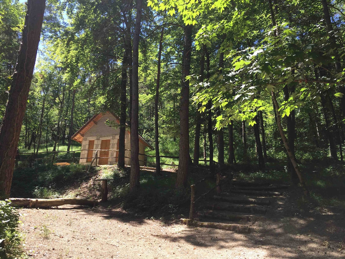 Le lodge Corydalis est un duplex avec bardage bois intégré en pleine forêt. Au rez-de-chaussée, se trouve la pièce de vie avec la cuisine, la salle de bain et un canapé convertible. De grandes baies vitrées vous permettront de profiter de la nature environnante. A l'étage se trouve un lit queen size (160*200) et la baignoire balnéo double. La terrasse vous donnera une magnifique vue sur le ruisseau.