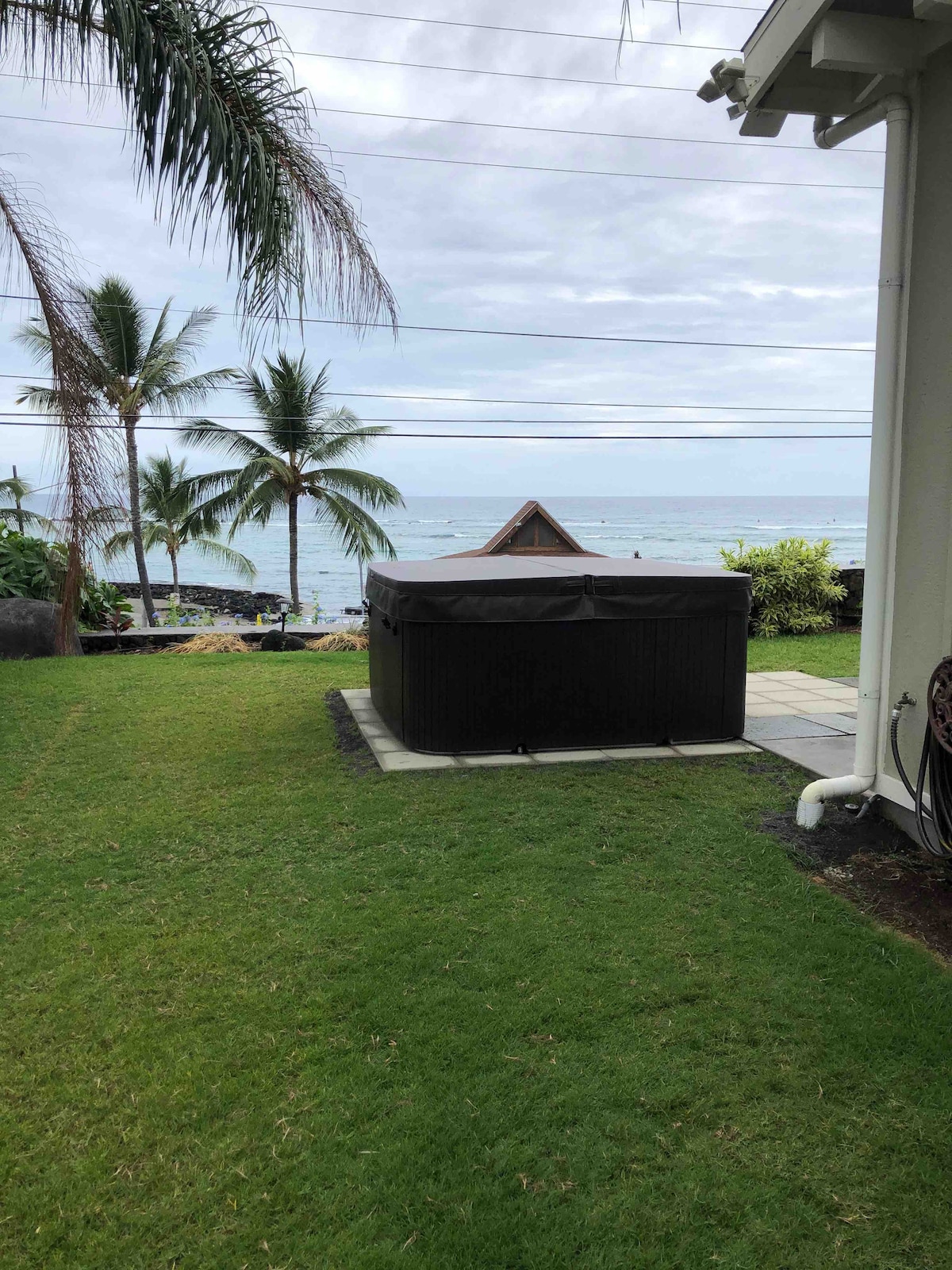 ¡Vistas increíbles de la bahía y los surfistas! Casa moderna (construida en 2014) con aire acondicionado en todas las habitaciones. Está enfrente de la playa de Kahalu'u. Este es el MEJOR lugar para practicar esnórquel y surf en Kona. A solo unos pasos encontrarás tablas de surf, la parada de Kona Trolley y camiones de comida. La casa tiene una bañera de hidromasaje, 4 dormitorios, uno arriba, 3 abajo. Hay un baño completo en suite arriba con inodoro, bañera y ducha. Hay un aseo abajo con ducha exterior muy privada. Además, un dormitorio tiene un lavabo/tocador y una segunda ducha al aire libre.