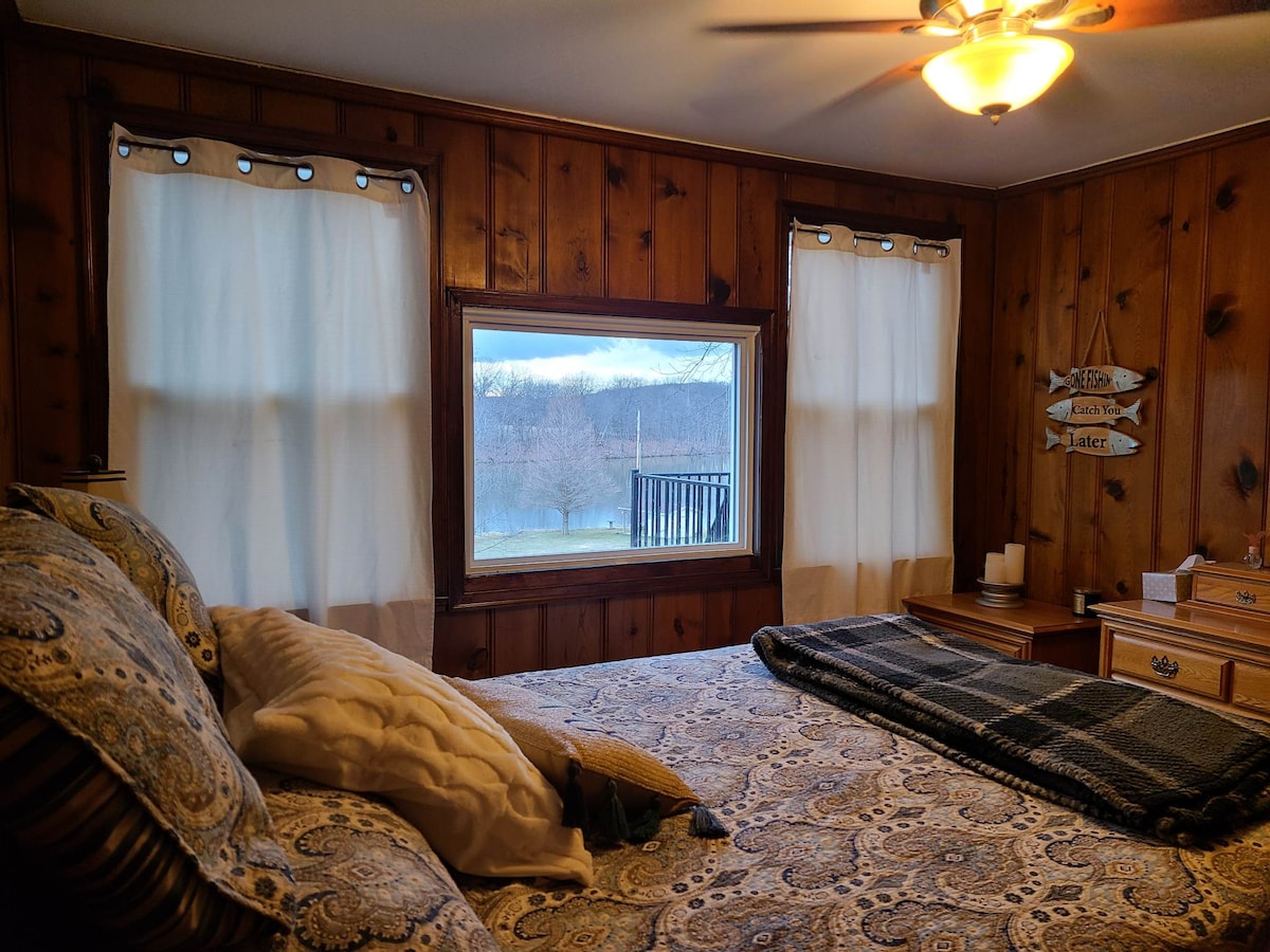 ¡Buscas un lugar tranquilo para relajarte y escapar! ¡Ven a alojarte en nuestra granja de 40 acres y relájate en nuestra casa del lago, donde podrás disfrutar de pesca, senderismo, piragüismo y mucho más! Disfruta sentado en la nueva terraza con vistas al lago, observando las águilas y otros animales salvajes. Siéntate alrededor del fuego en la terraza o haz tu propio fuego junto al lago. Disfruta del cobertizo para botes donde puedes sentarte y relajarte justo en el lago. Cerca de la ciudad. Nota: No hay wifi. ¡Este es realmente un lugar donde puedes desconectar!