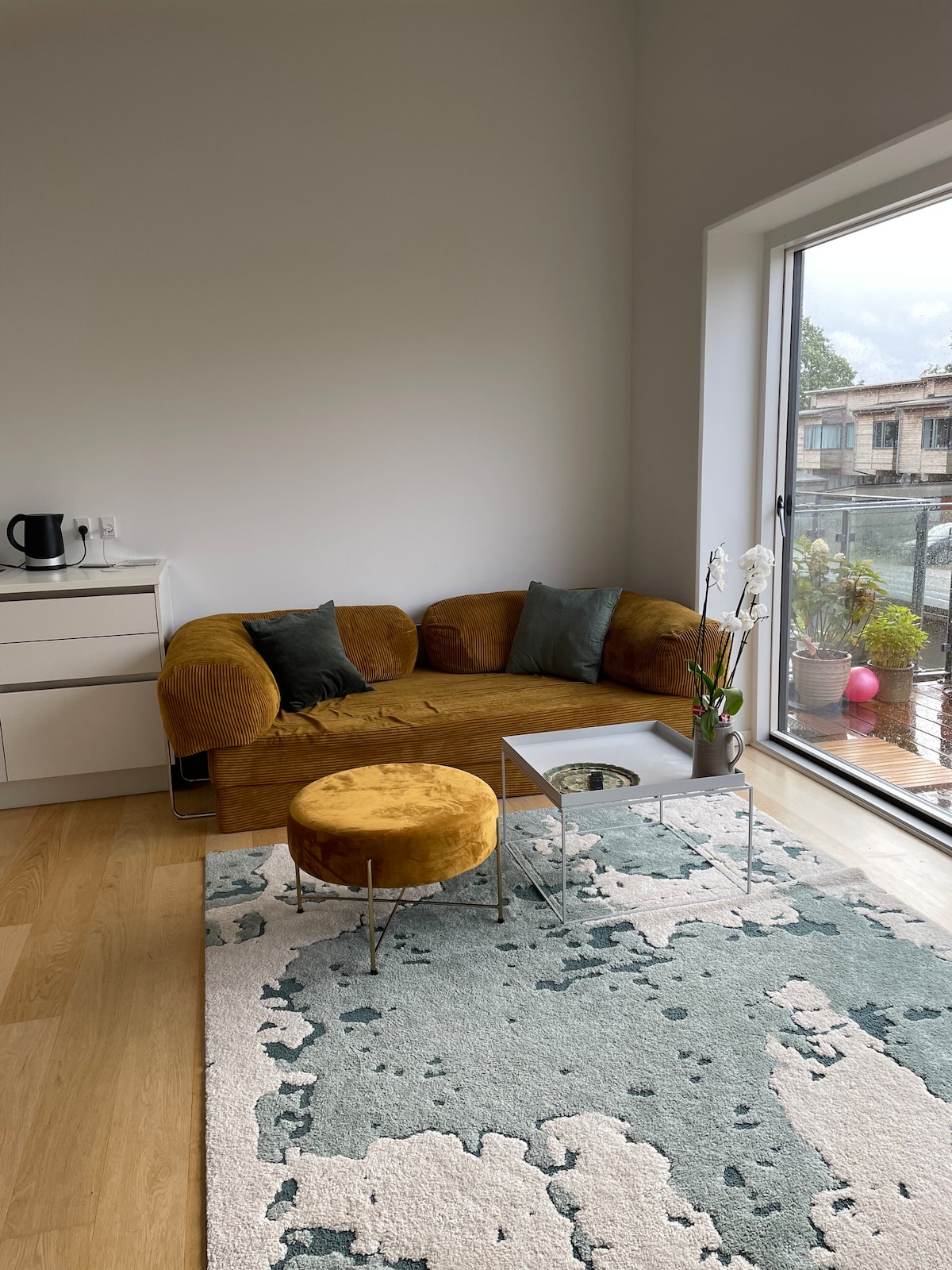 The flat/apartment is a very quiet area to be at considering its’ location. It is full equipped, cozy and spacious. To access the main centre area is only 2mins. walking distance and the main train station is 5mins walking distance. There is also an alternative transportation option on ferry to Sweden Helsingborg in the same station. Restaurants and stores are available daily, however the opening hours may vary. Note: it’s a one bedroom but can accommodate 3rd person with a cozy couch & blanket