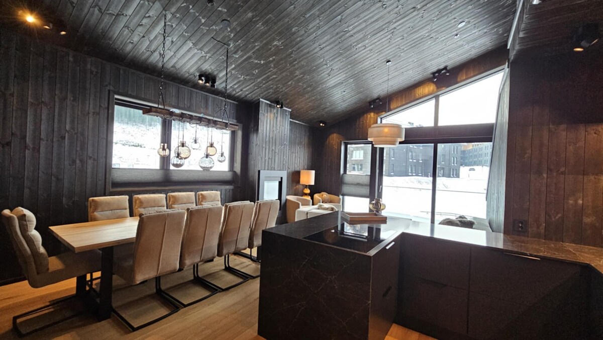 Gran cabaña de nueva construcción con excelente ubicación en la parte superior del área alpina, a 100 metros del telesilla. Esquí de fondo en las inmediaciones. En verano, tienes el sol de la mañana en la terraza del desayuno, antes de que el sol de la tarde se extienda a una gran terraza combinada en pizarra y madera, ¡con fantásticas vistas a Jotunheimen! Excelente senderismo todo el año. Dos dormitorios y dos baños en el primer piso. Hay camas con dos dormitorios y una solución abierta hasta la sala de estar. Amplia cocina con acceso directo a sala de esquí/puesto de lubricante. La cabaña tiene un cargador de autos eléctricos.