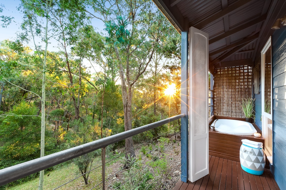 Una acogedora casa de campo justo a las afueras de la hermosa ciudad termal de Hepburn Springs. Con hermosas vistas sobre Breakneck Gorge y cerca de restaurantes, spas de día y Hepburn Mineral Springs, puedes relajarte en la terraza, en el patio o salir y descubrir esta hermosa región. Este es el lugar perfecto para relajarse y dejar atrás el ajetreo de la ciudad. Se admiten mascotas, pero los propietarios deben asumir la responsabilidad de ellas, ya que solo el patio delantero está completamente cercado.
