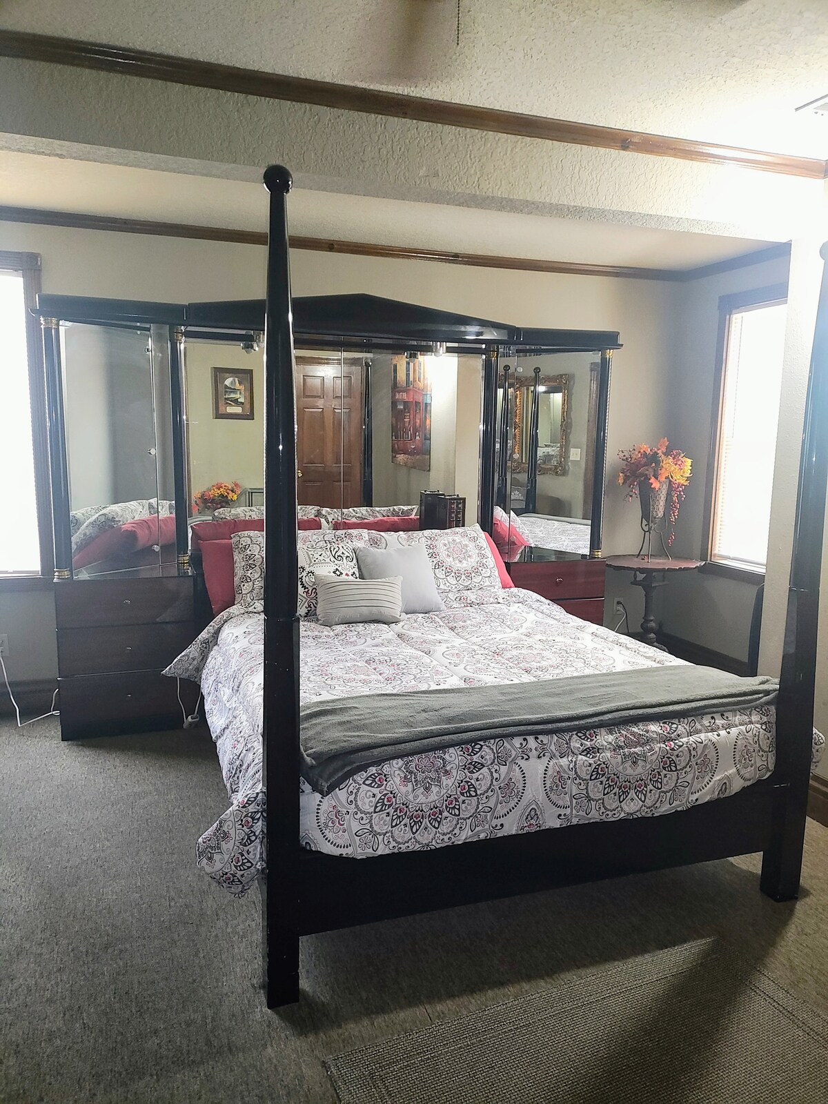 ¡Disfruta de un hogar lejos de casa! Esta casa está construida para una vida pacífica, con un plano de planta abierta. Sofá muy grande para sentarse en grupo, totalmente equipado con juegos de mesa, libros y novelas, una gran variedad de juguetes para niños, así como una gran cocina con electrodomésticos, utensilios de cocina, utensilios para hornear, etc. Las camas están equipadas con ropa de cama de lujo. Este terreno en esquina de una calle sin salida tiene vistas a Horseshoe Lake a lo lejos. Hay mucho aparcamiento en la acera, así como en la entrada y en el garaje. Asientos de comedor hasta 8, además de asientos de bar.