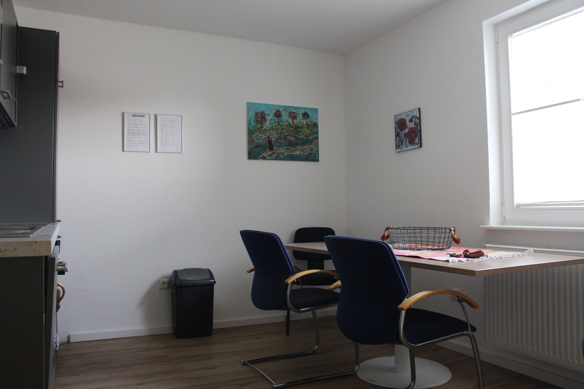 Unser Hof liegt direkt am Waldrand,nahe dem Kurort Bad Pyrmont mit Blick in eine unverbaute Naturlandschaft. Die Wohnung für Monteure und Feriengäste mit 3Etagen und 4 Schlafzimmern wurde neu eingerichtet.Separater Eingang im EG mit Flur,Garderobe und Waschraum mit Waschtrockner. In der 1. Etage befinden sich die 4 Schlafzimmer und ein großzügiges Bad mit Dusche und Wanne. In der 2. Etage die große Küche mit anschließendem Wohnbereich und überdachtem Balkon.WLAN und Parkplätze vorhanden.