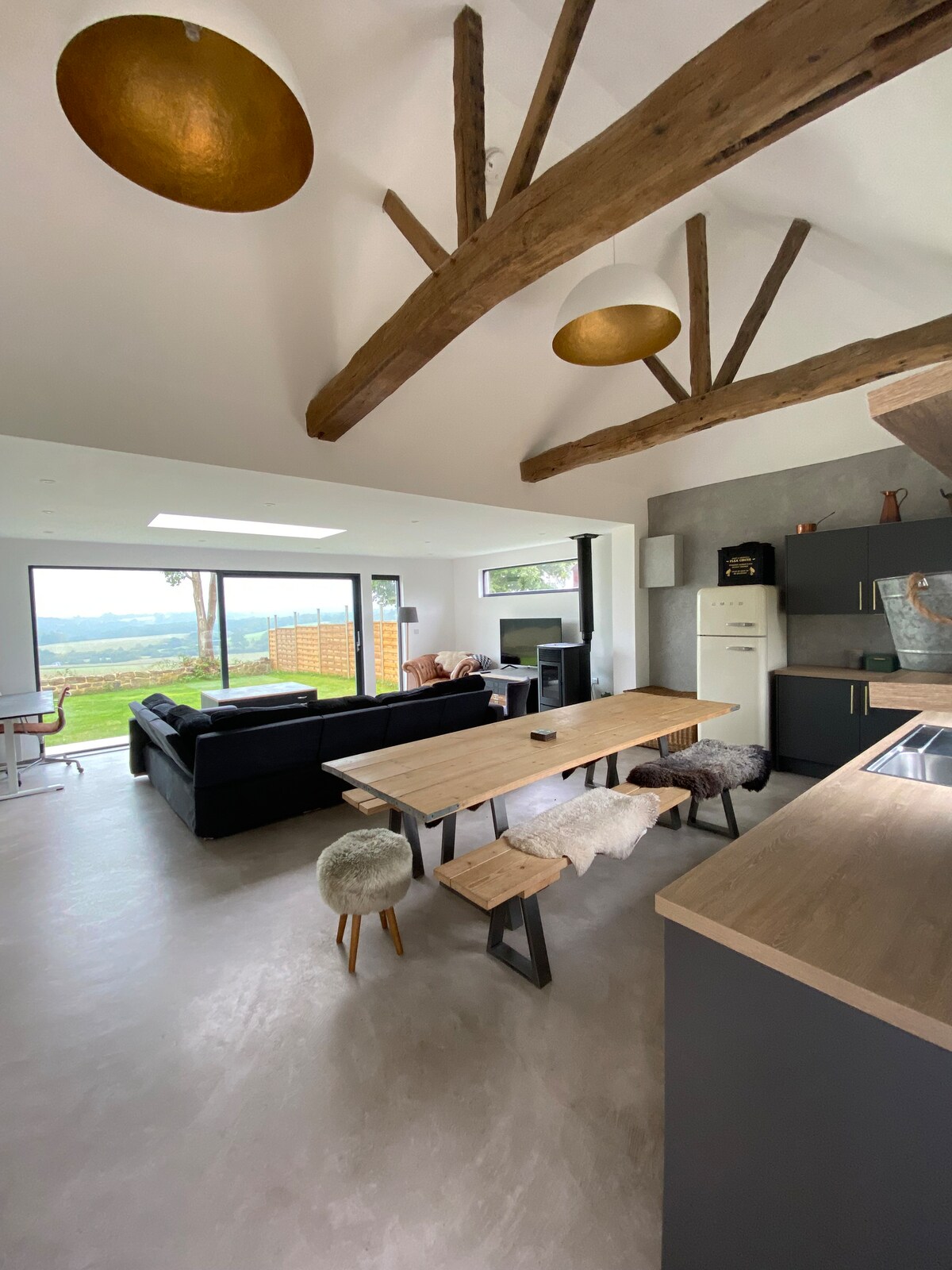 Our chalet-inspired studio barn, with vaulted ceilings and oak beams, is light and airy in the summer and beautifully warm and cosy in the winter, with underfloor heating throughout. It is completely self-contained, with a separate entrance from the adjacent family house. With a sumptuous superking bed (or two twins), sofa bed, unlimited fast WiFi and HDTV, you are assured of a relaxing and welcoming stay in a family-friendly setting in the East Sussex countryside.
