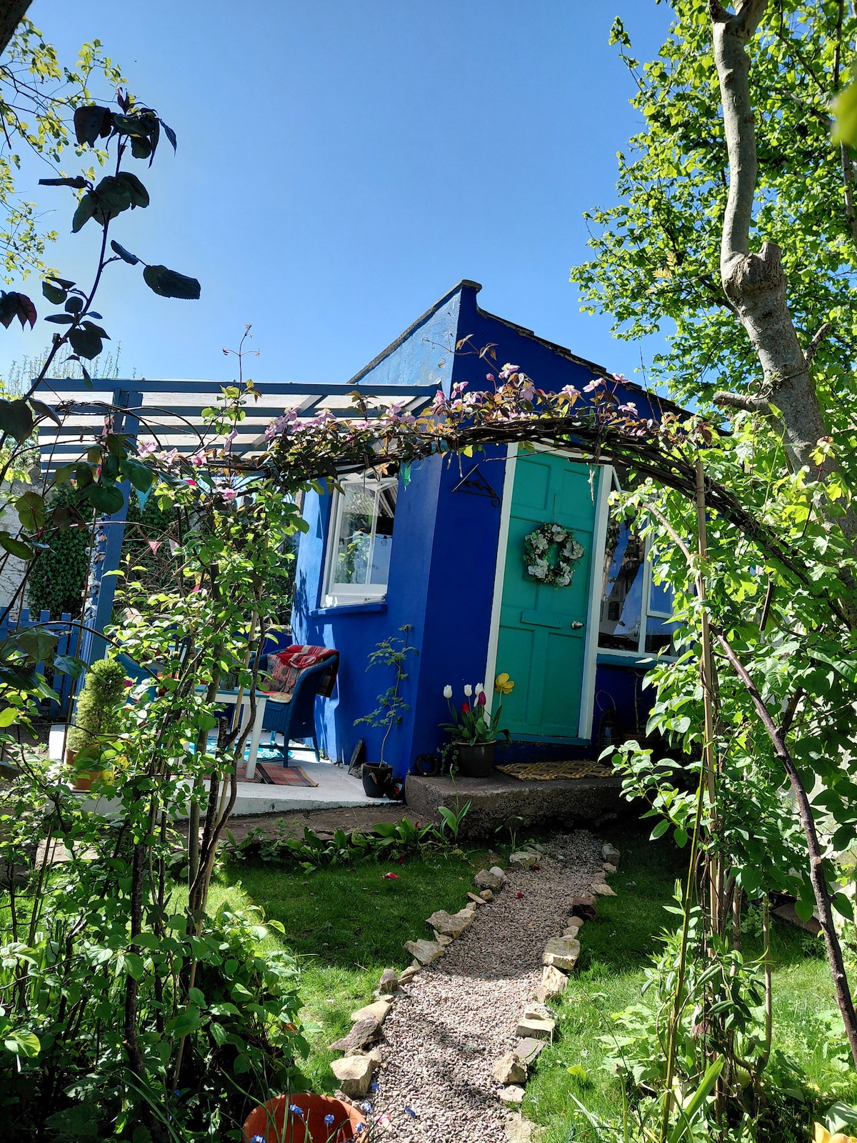 Comienza el día entre superficies de madera y ebanistería clásica en una cocina luminosa mientras preparas un delicioso desayuno para disfrutar en el patio del jardín. Relájate con un libro de bolsillo en el sofá en medio de encantadores accesorios, decoración inspirada en la naturaleza y suelos de madera. Un bungalow independiente de 1 dormitorio en los terrenos de nuestra casa, recién reformado con una decoración de buen gusto en todas partes. El dormitorio tiene una cama doble, pero también podemos ofrecer un sofá cama en la sala de estar y una cuna de viaje (si es necesario).