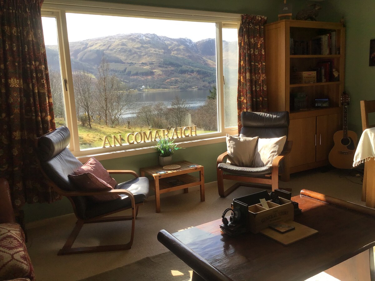 Taigh Na Frithe es un gran departamento espacioso con capacidad para 2 personas. La cama es superretera y hay un armario empotrado y vistas al jardín. La sala de estar tiene vistas al jardín a través de enormes ventanas francesas que también se pueden abrir completamente en los días de buen tiempo. Esto realmente abre el espacio y trae el hermoso paisaje al interior. La cocina moderna y totalmente equipada tiene todo lo que necesitas con cocina, microondas, nevera/ congelador grande, lavadora secadora y lavavajillas.